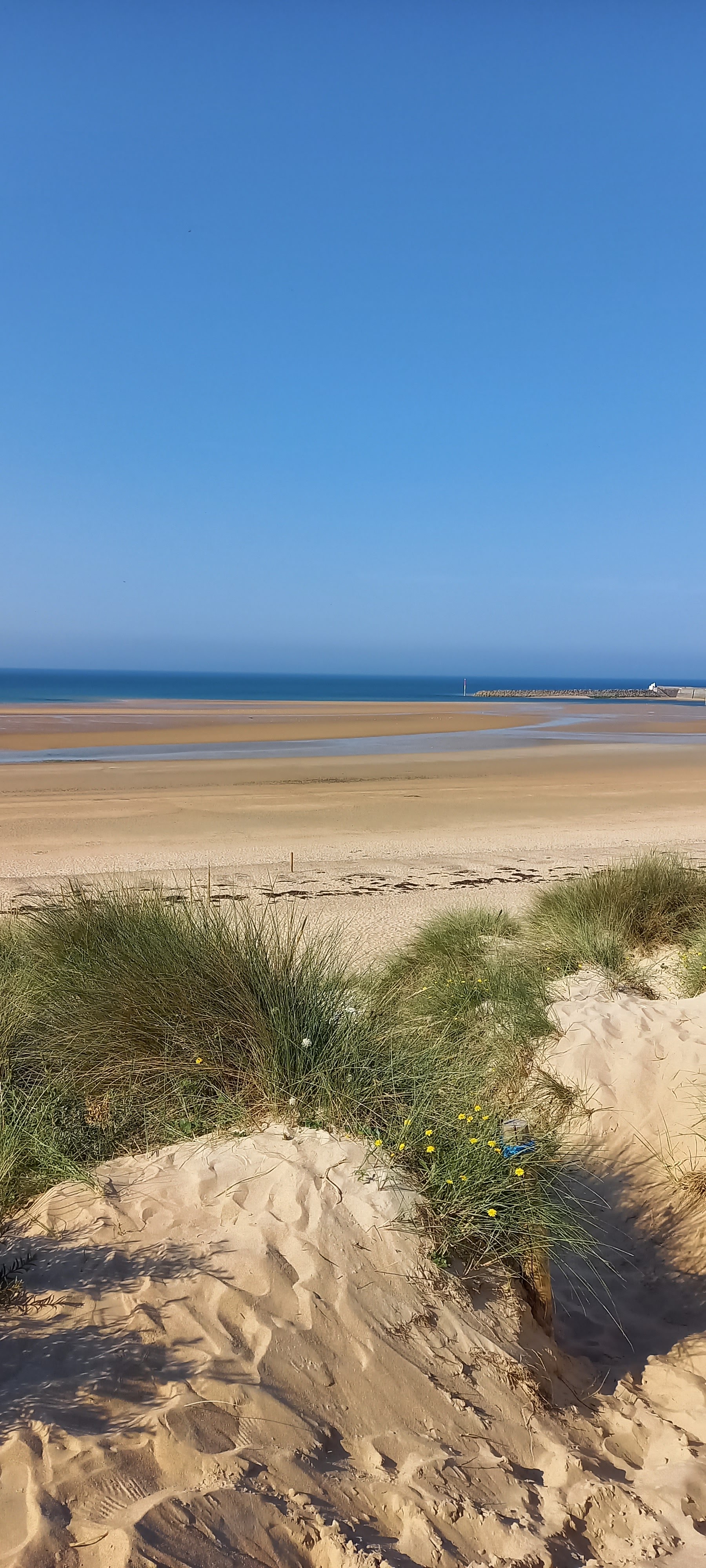 J'ai découvert cette plage et l'amplitude de marée typiquement normande. On a de la place et on ne crame pas. Ça vaut le coup de venir se baigner avec une température de l'eau vivifiante.