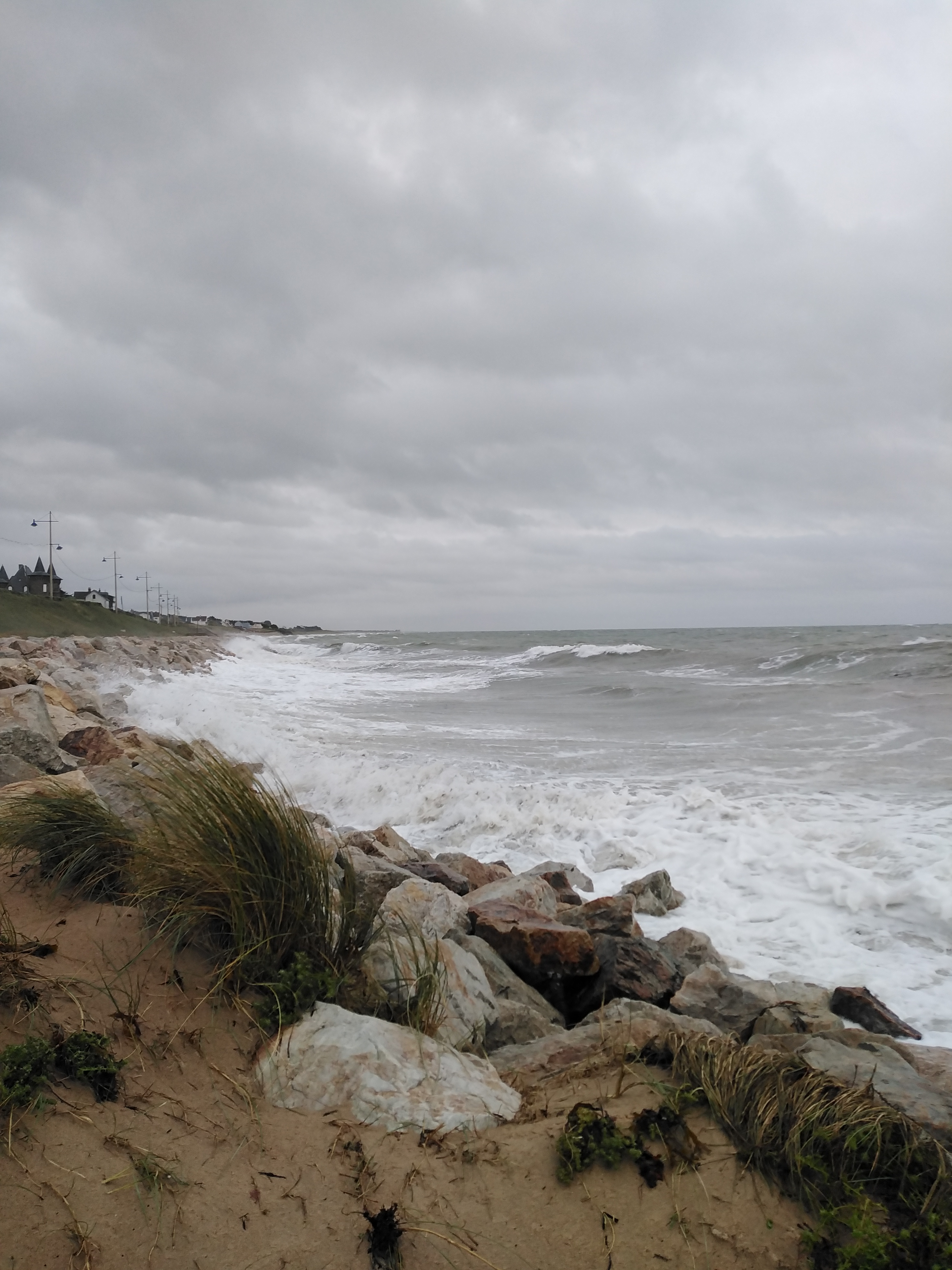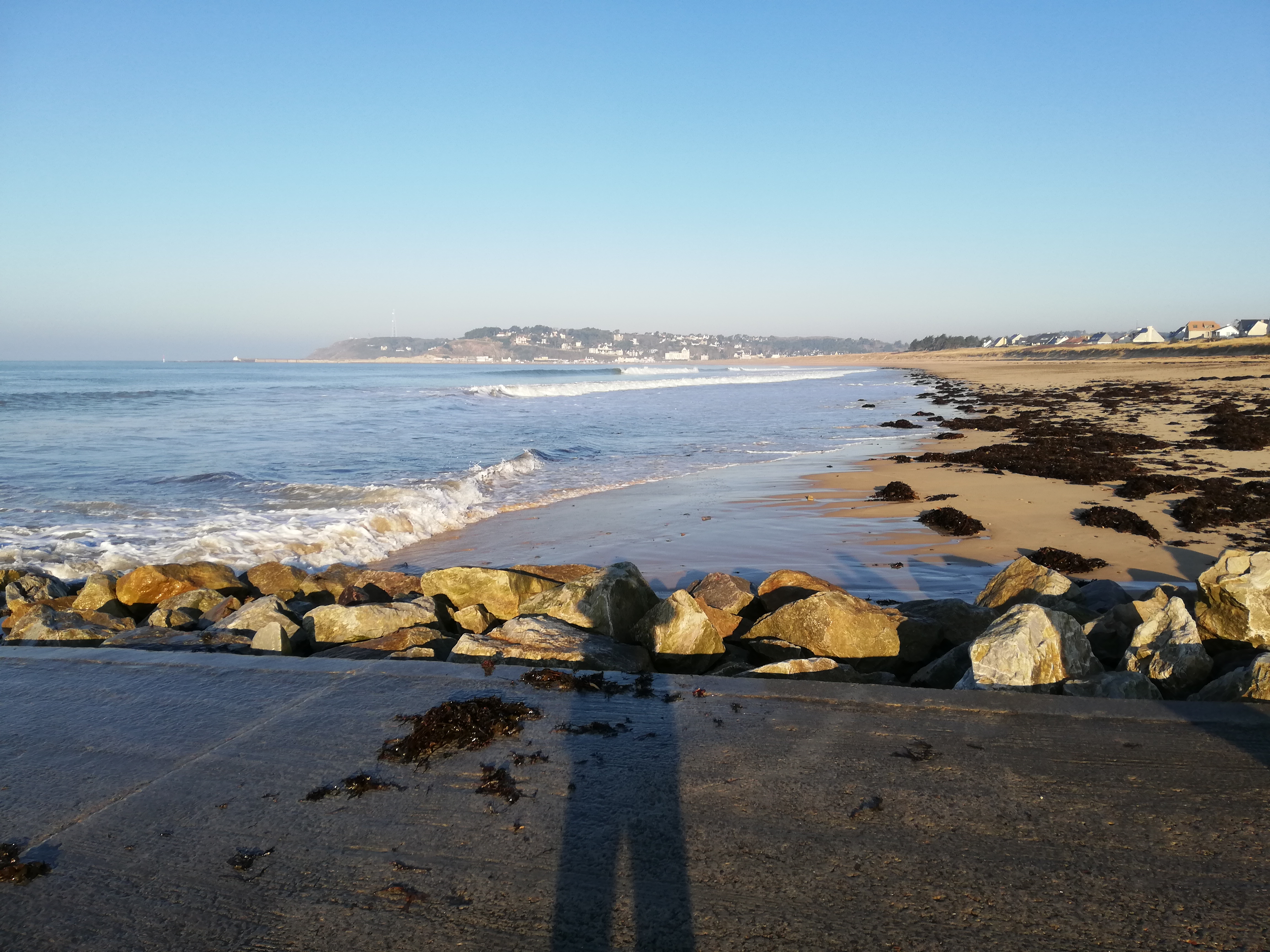 Grande plage, bonne vue sur Carteret, mais beaucoup d'algues , du moins au moment de mon passage