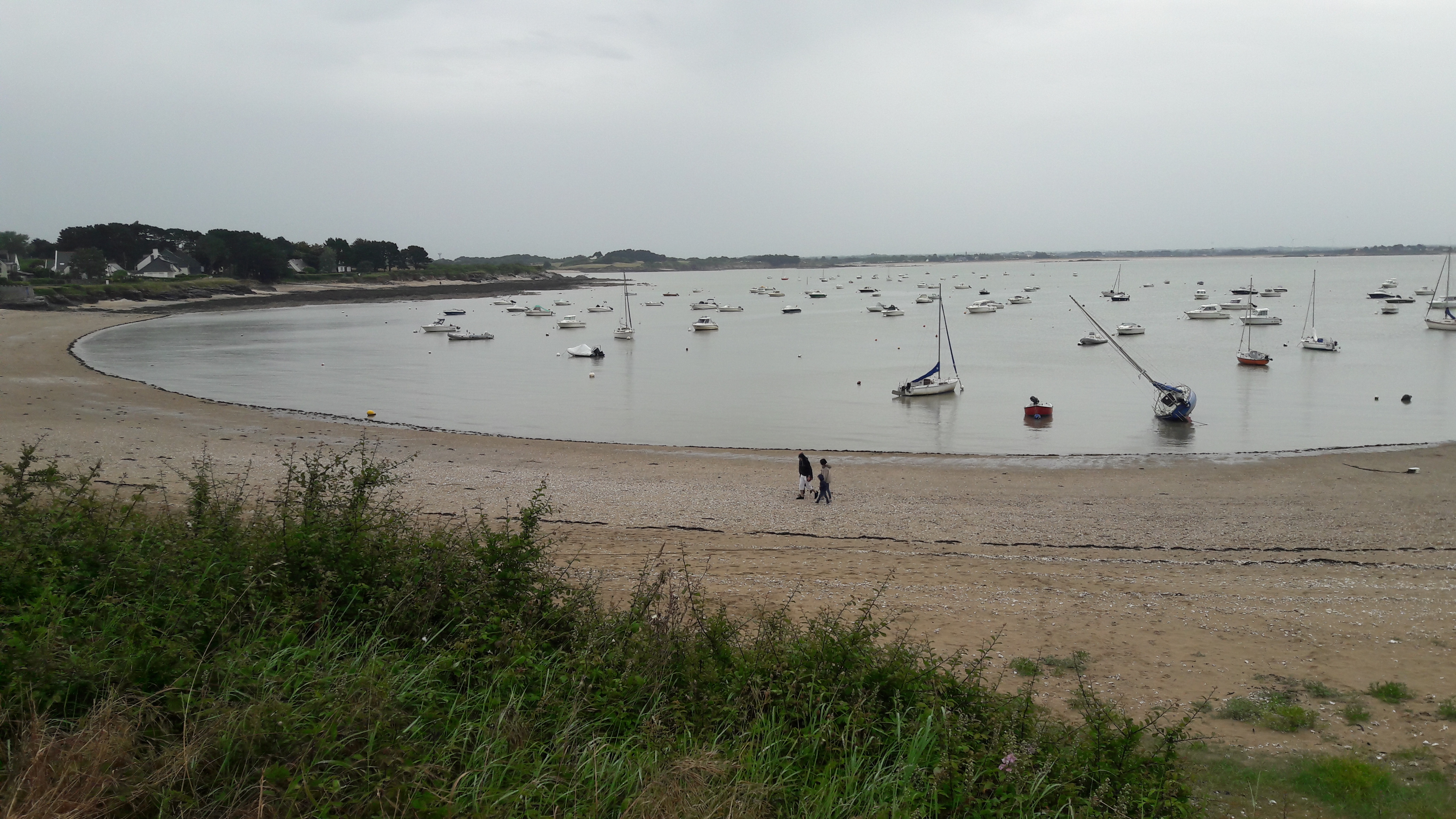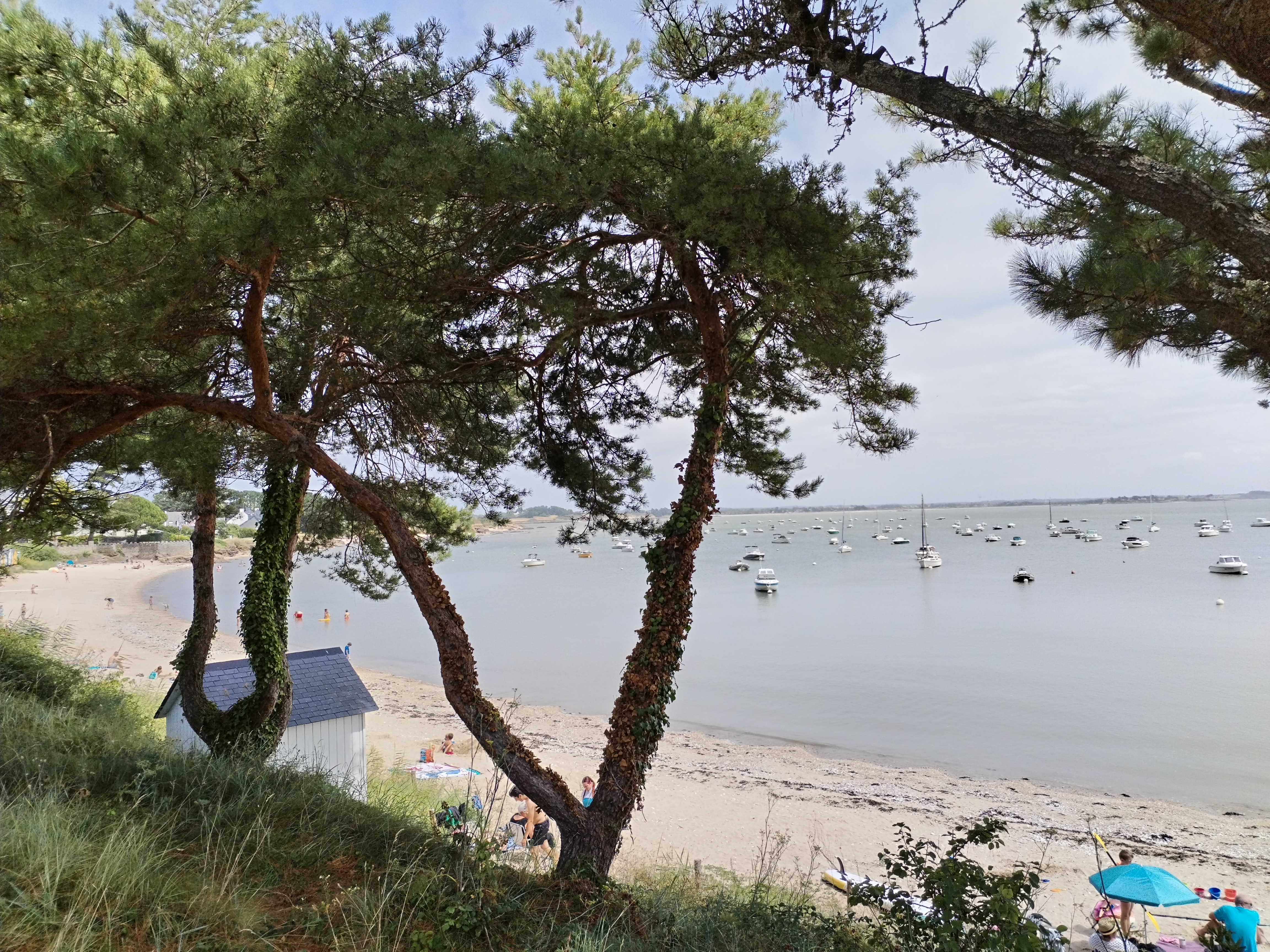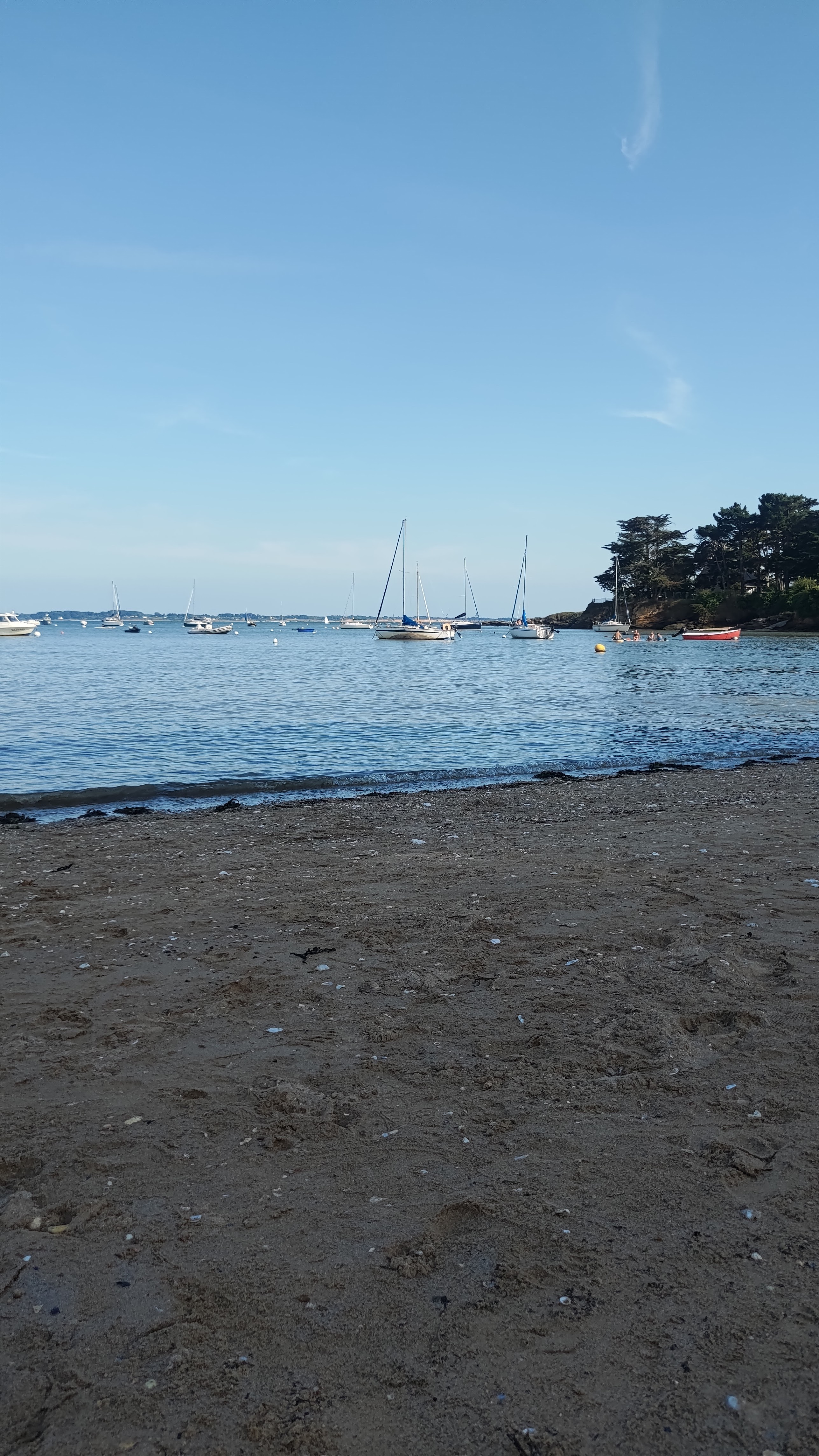 Alors oui la plage est magnifique.avec ses petites cabines et pins parasol,mais as plus rien pour se baigner,a cause de toutes accords donnez aux plaisanciers,si vous voulez vous baigner sans etre dans une marre de pétrole venez entre avril et début juin.Car la mairie distribue trop de corps-mort ils y en n as au moins 150 sur cette petite plage,et pas beaucoup bouge car l essence a augmenté. ..et par contre en dehors de la saison les pêcheurs a pieds et restaurateurs prennent cette plage pour une poubelle comme celle de treherve ...ils creusent et font des trous,ils rejettent leurs coquilles d huitres une fois mangé et les restaurateurs balancent leurs déchets...j y viens depuis mon enfance et dégoûté de voir ce qu est devenu cette plage,même la grande kervoyak jamais entretenu.alors qu il y as des agriculteurs qui aiment récupérer les algues ou recycler les coquilles d huitres...bref arrêter de prendre vos photos hors saisons.