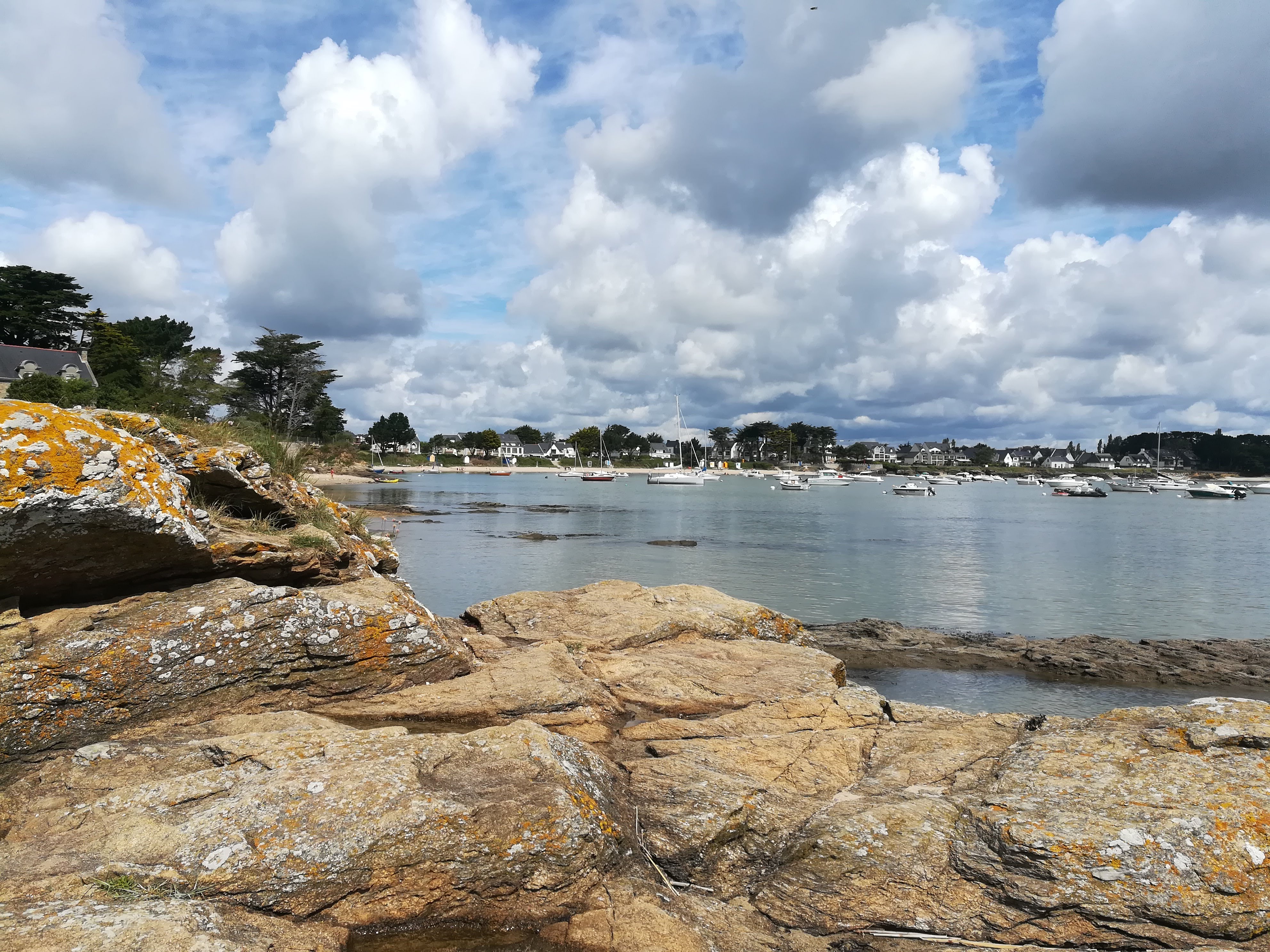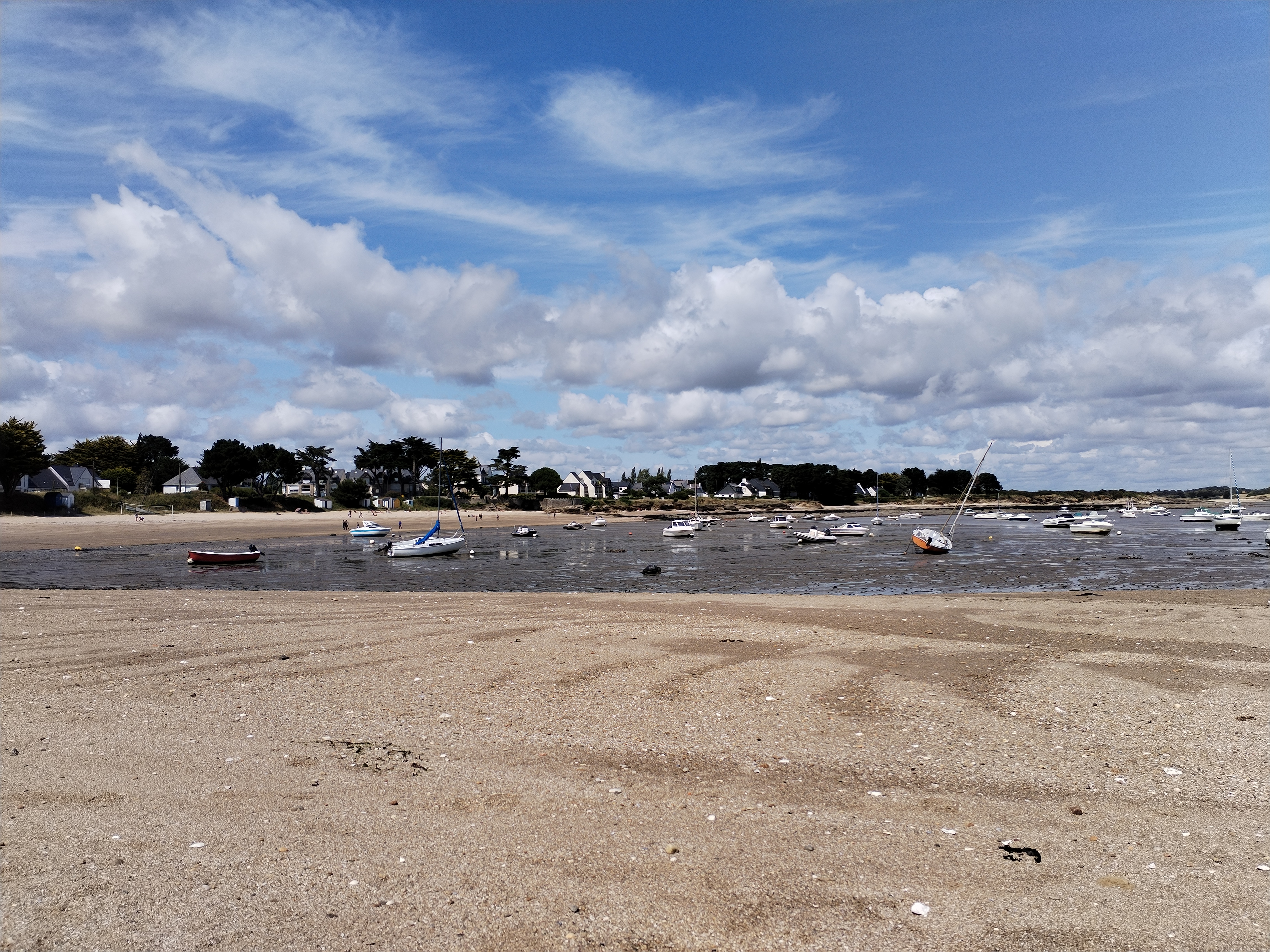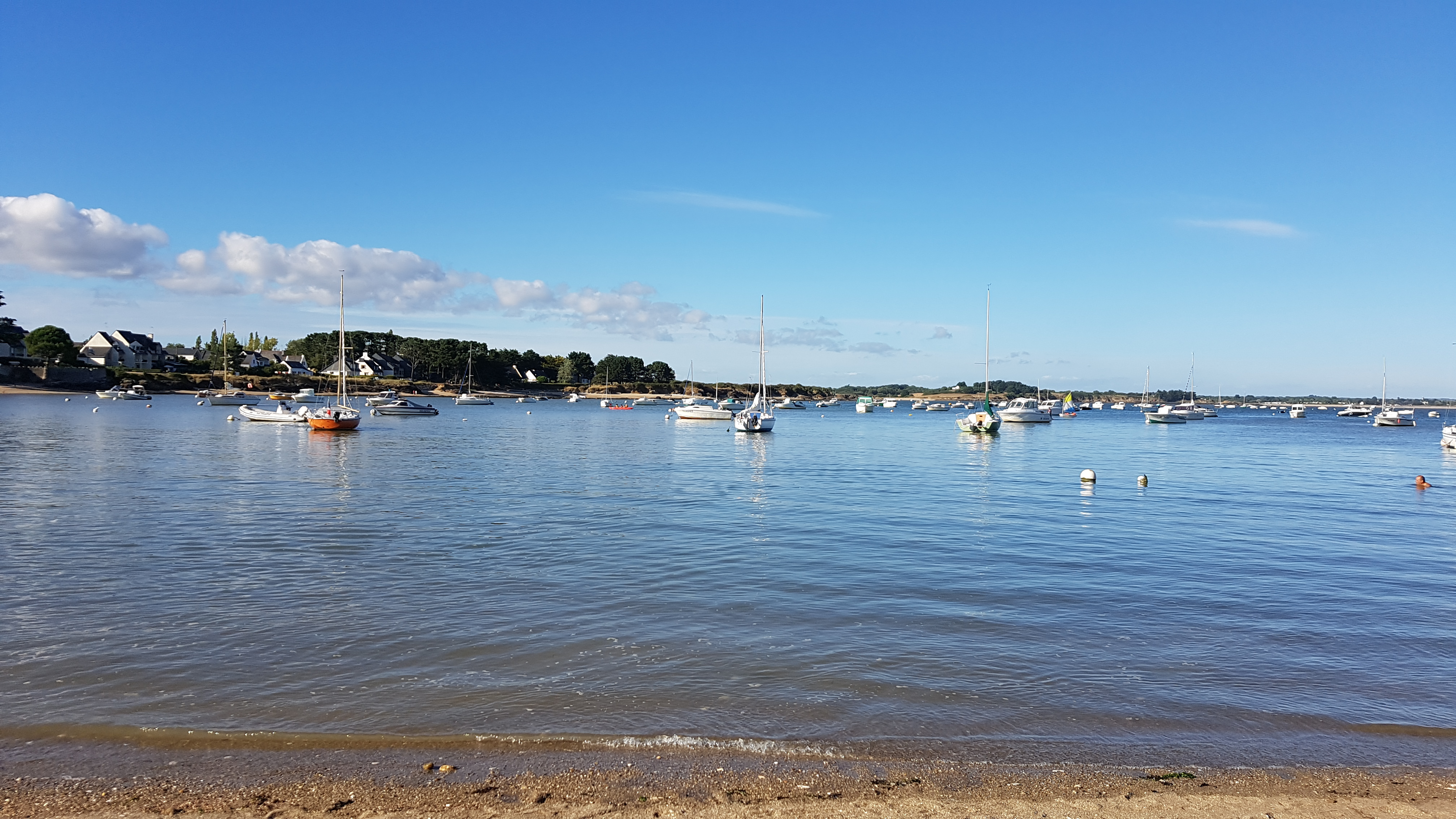 Alors oui la plage est magnifique.avec ses petites cabines et pins parasol,mais as plus rien pour se baigner,a cause de toutes accords donnez aux plaisanciers,si vous voulez vous baigner sans etre dans une marre de pétrole venez entre avril et début juin.Car la mairie distribue trop de corps-mort ils y en n as au moins 150 sur cette petite plage,et pas beaucoup bouge car l essence a augmenté. ..et par contre en dehors de la saison les pêcheurs a pieds et restaurateurs prennent cette plage pour une poubelle comme celle de treherve ...ils creusent et font des trous,ils rejettent leurs coquilles d huitres une fois mangé et les restaurateurs balancent leurs déchets...j y viens depuis mon enfance et dégoûté de voir ce qu est devenu cette plage,même la grande kervoyak jamais entretenu.alors qu il y as des agriculteurs qui aiment récupérer les algues ou recycler les coquilles d huitres...bref arrêter de prendre vos photos hors saisons.