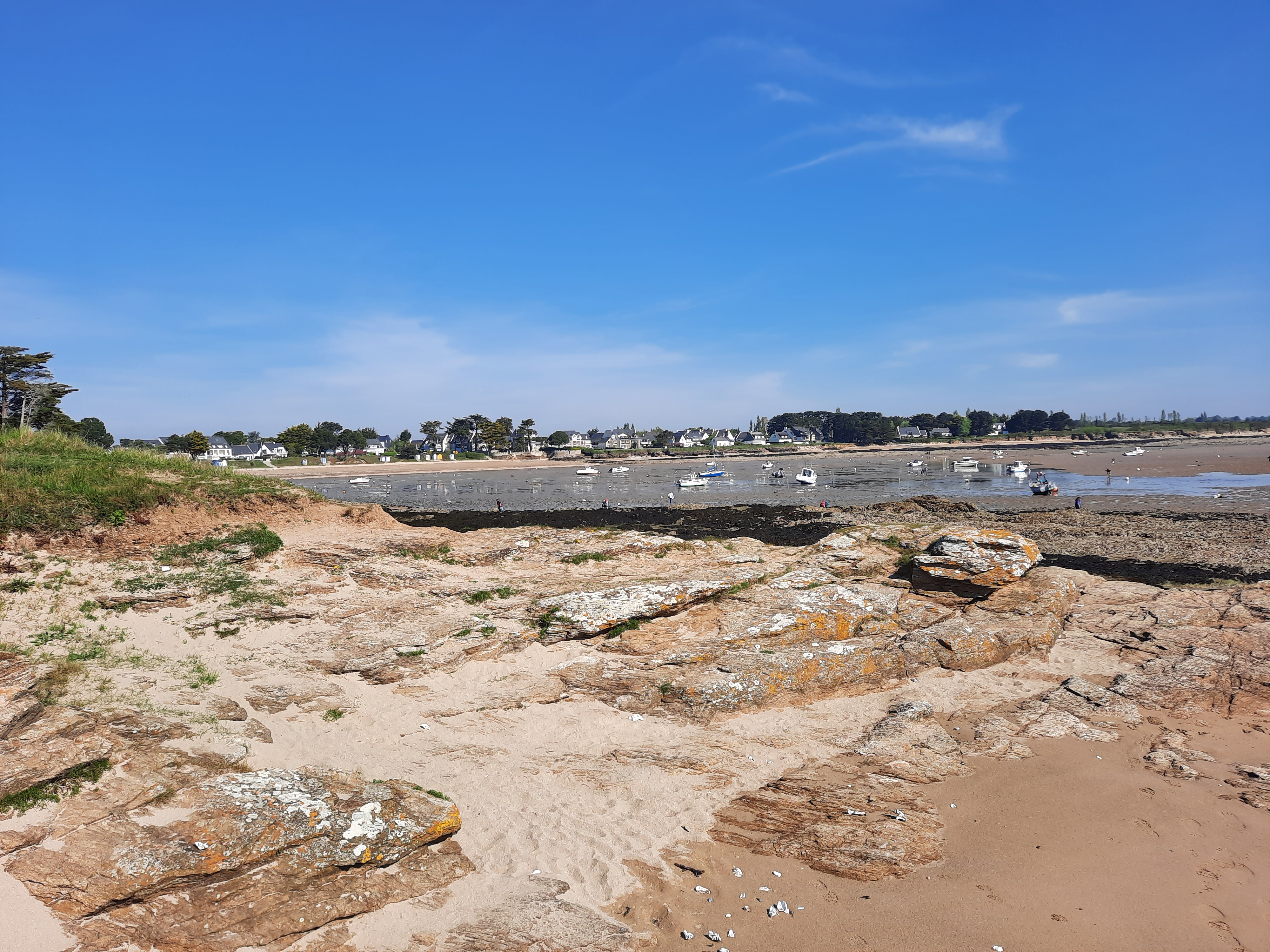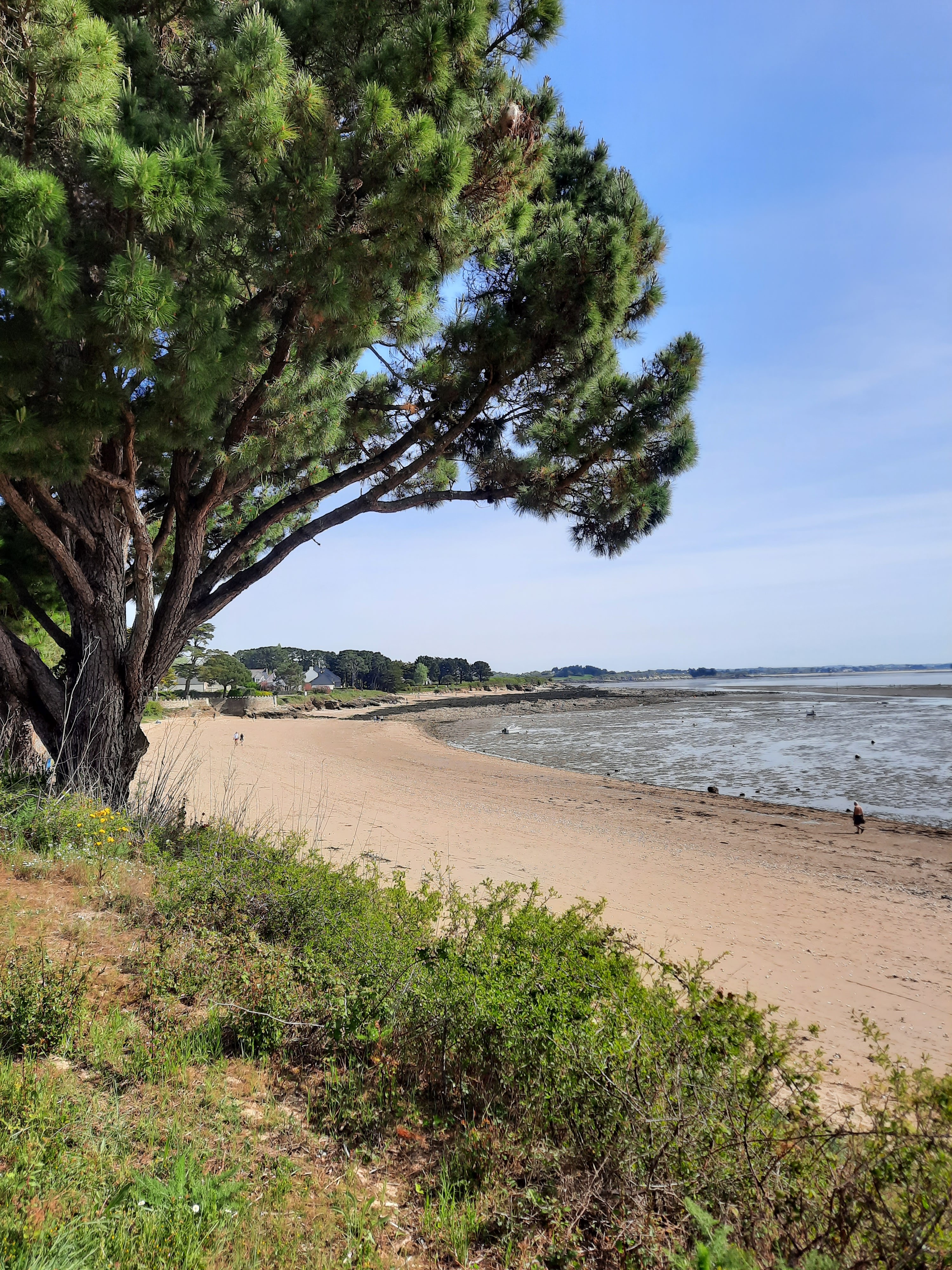 Jolie plage / dunes/ vue sur estuaire de la vilaine/ l’eau de baignade est donc très moyennement appréciable. La classe popu. du Morbihan 🙈😬
