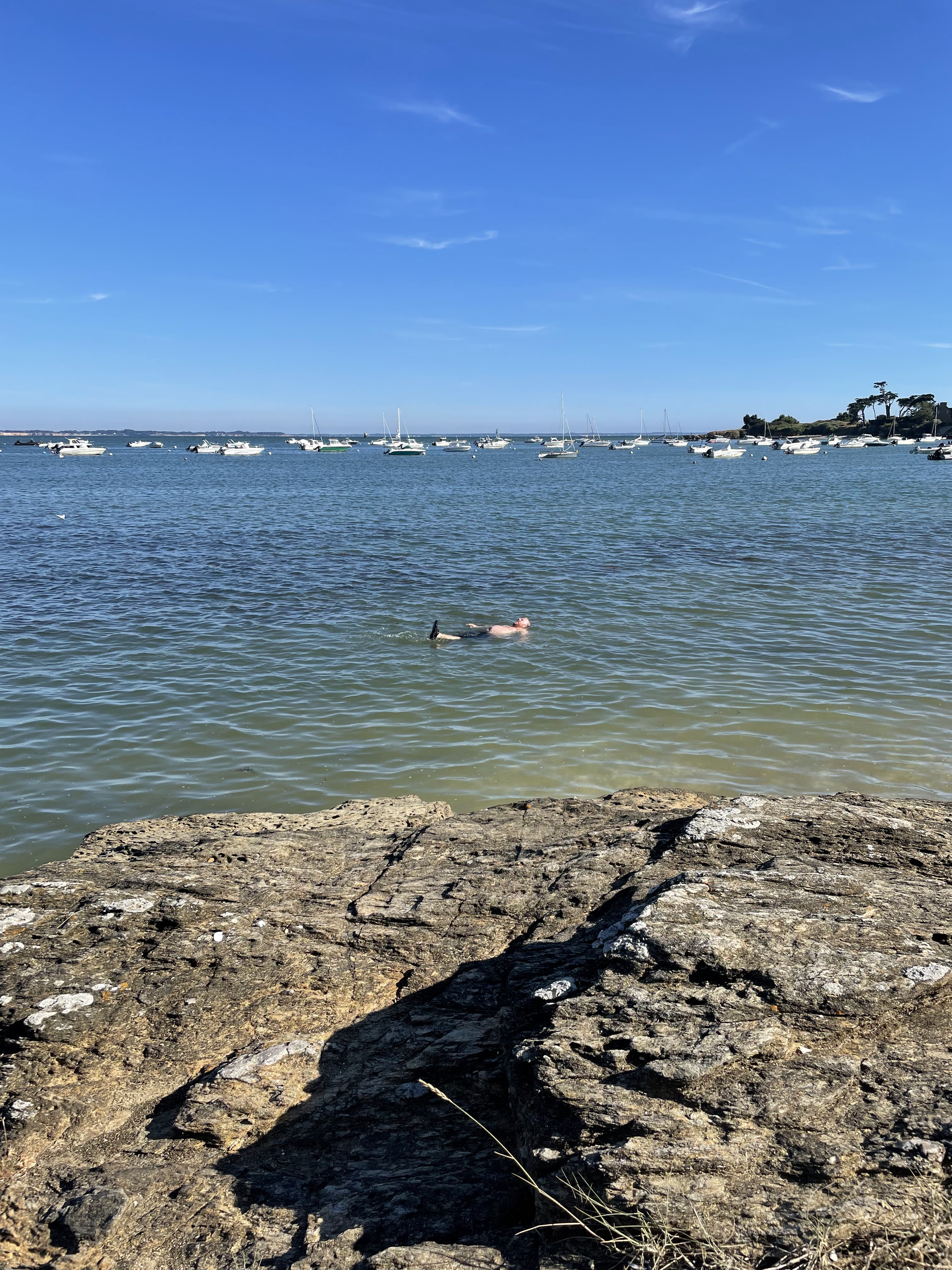 Petite plage calme. Belle vue sur les bateaux au mouillage