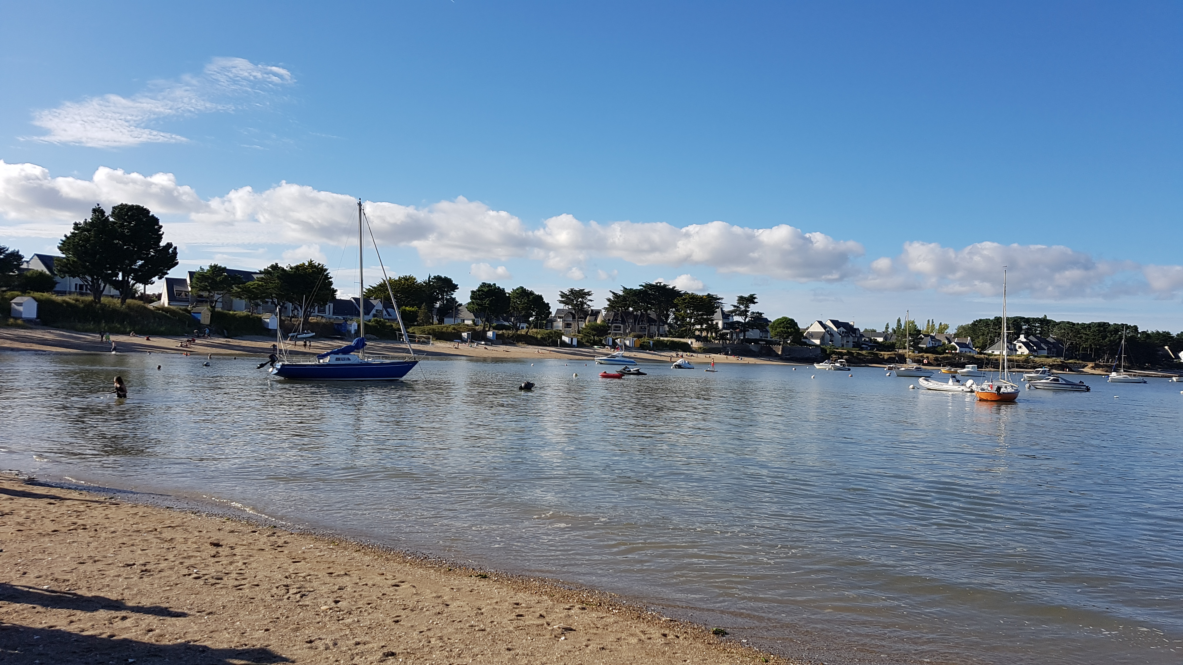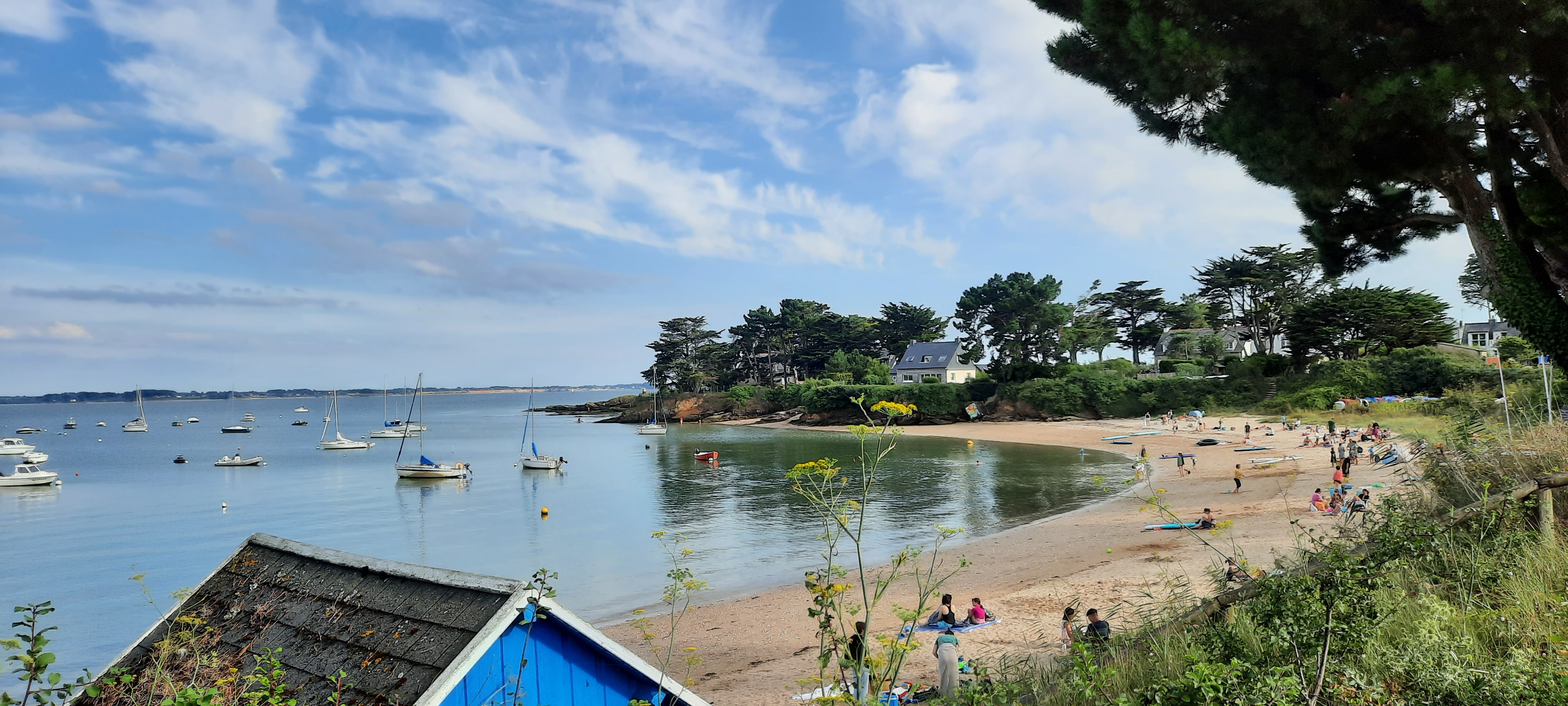 Elle conserve le charme des petites plages familiales d'antan. Beaucoup de jolies balades autour donc nous préférons au site plus grand de Damgan.