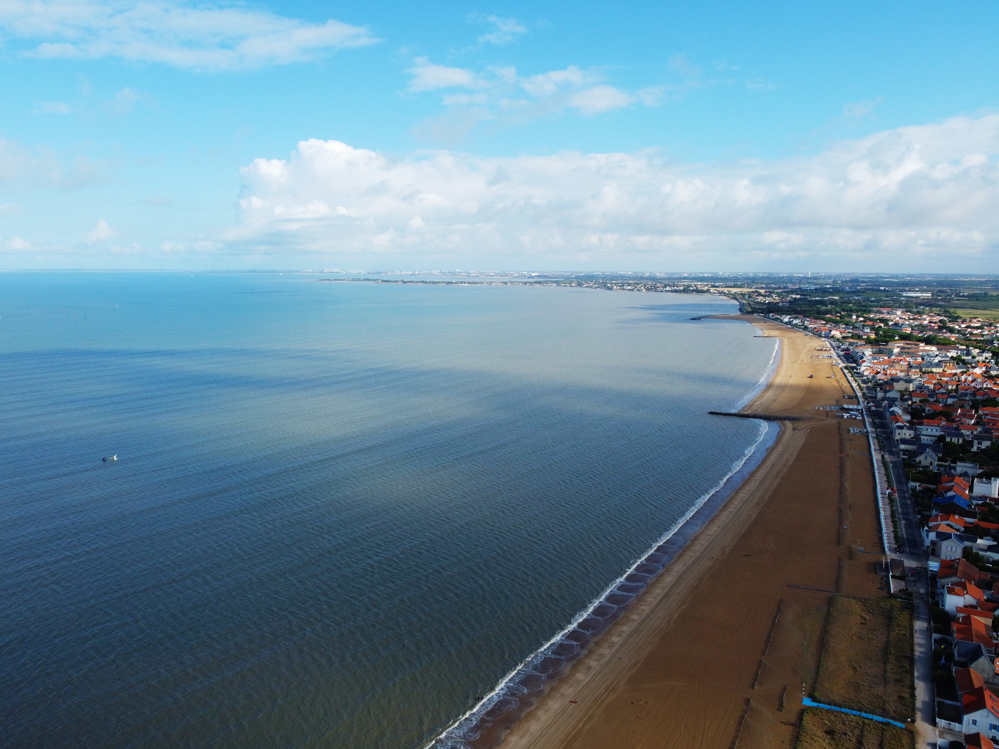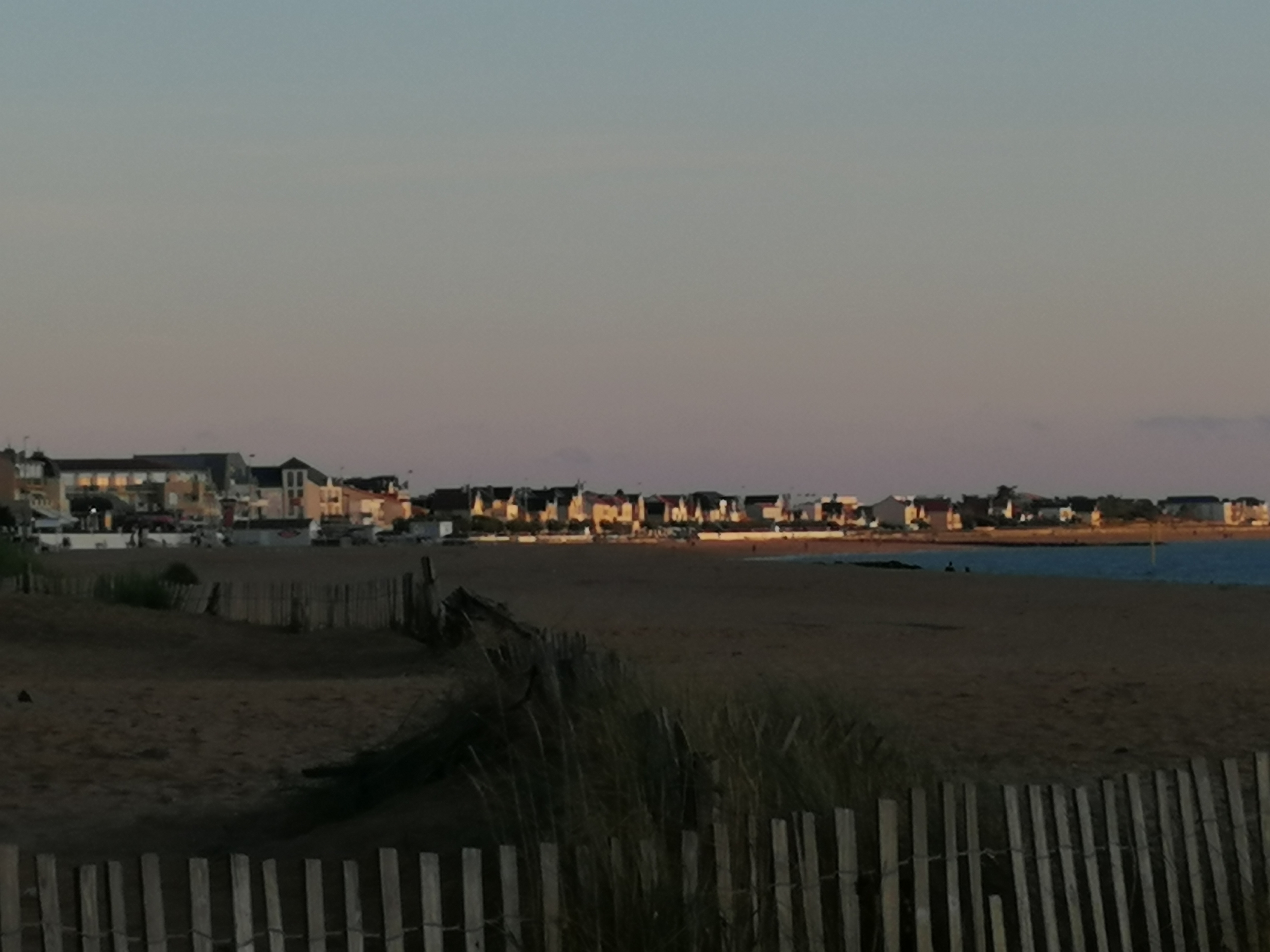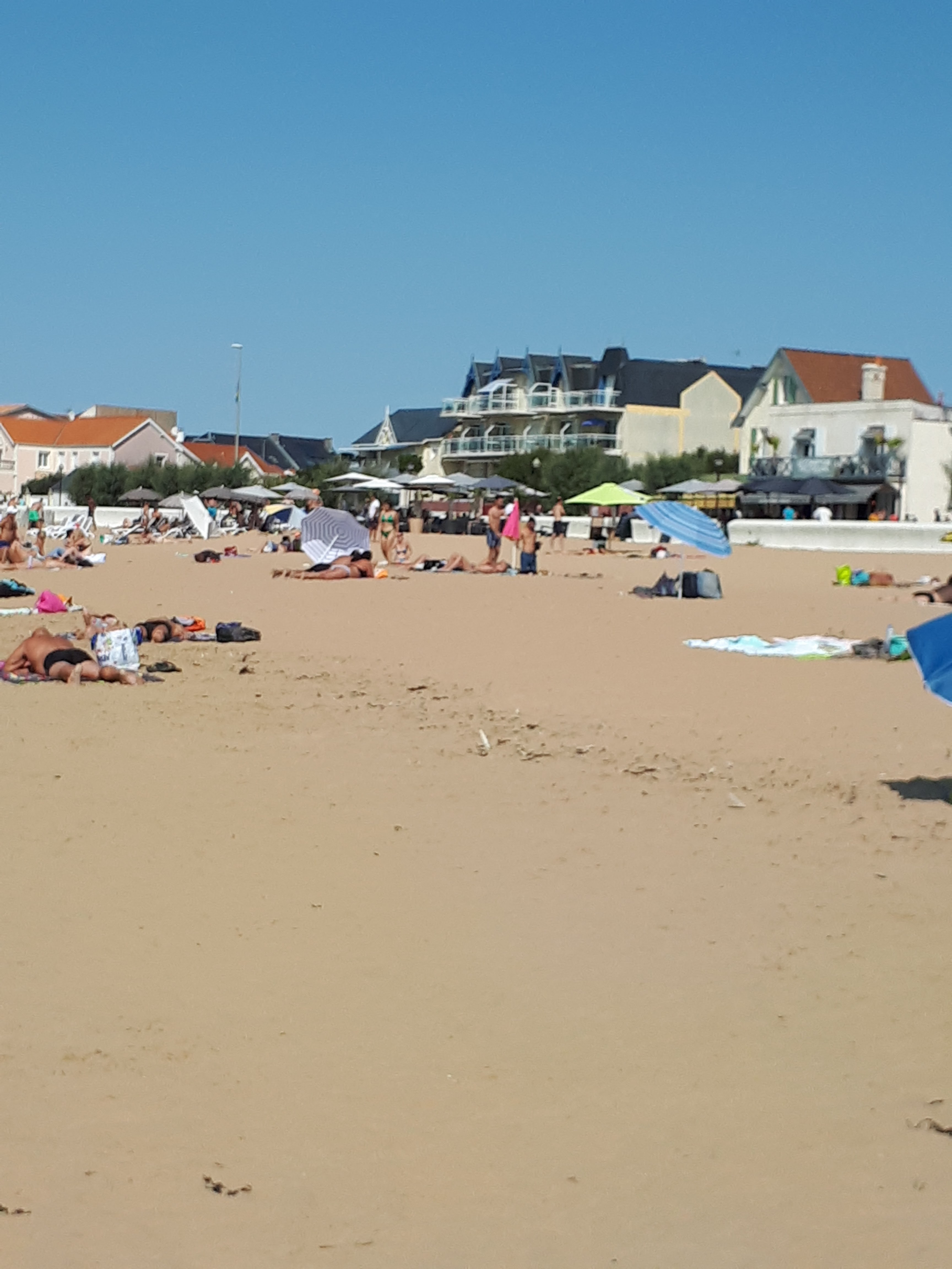 Belle et grande plage ou on a trouve de la place malgré une grosse affluence. Stationnement aise dans toute la ville. Gratuit avec 5 mns de marche ou payant juste a côté de la plage. Ville très propre et très bien tenue (ca change de sa voisine La Rochelle), on s y sent en sécurité avec la visibilité d agents de la police municipale. Parfait pour les familles.