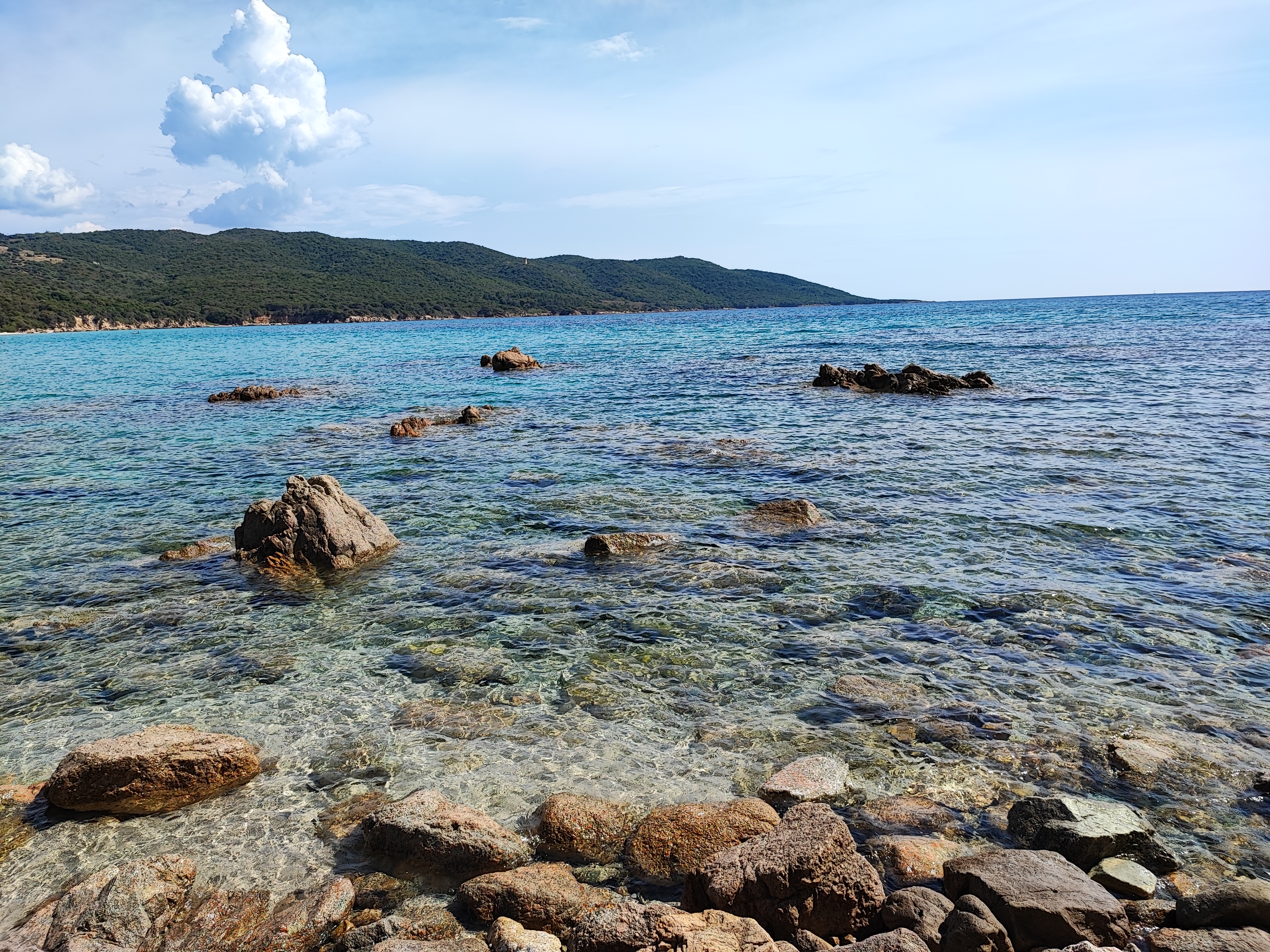 Très belle plage, sable blanc, quelques rochers d'ou il est possible de faire quelques plongeons (3 mètres), snorkeling facile, eaux cristallines. Facile d'accès avec parking à proximité. Paillote (pas testé). On aperçois deux tours génoises. Chemin de randonnée vers Porto Pollo et Coti-Chiavari qui longe en partie la mer. Nous n'avons pas pu le faire mais ce doit être très beau.