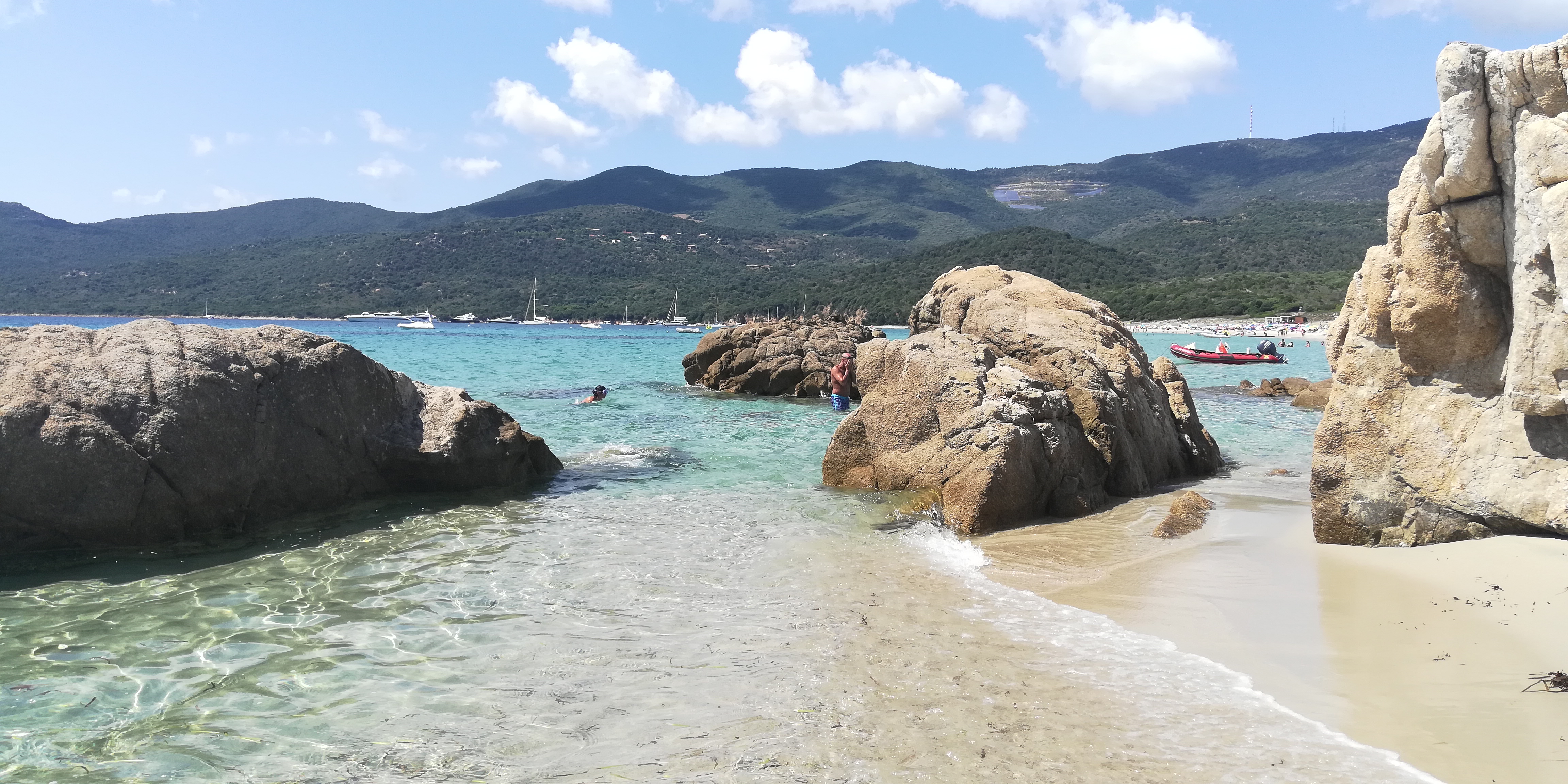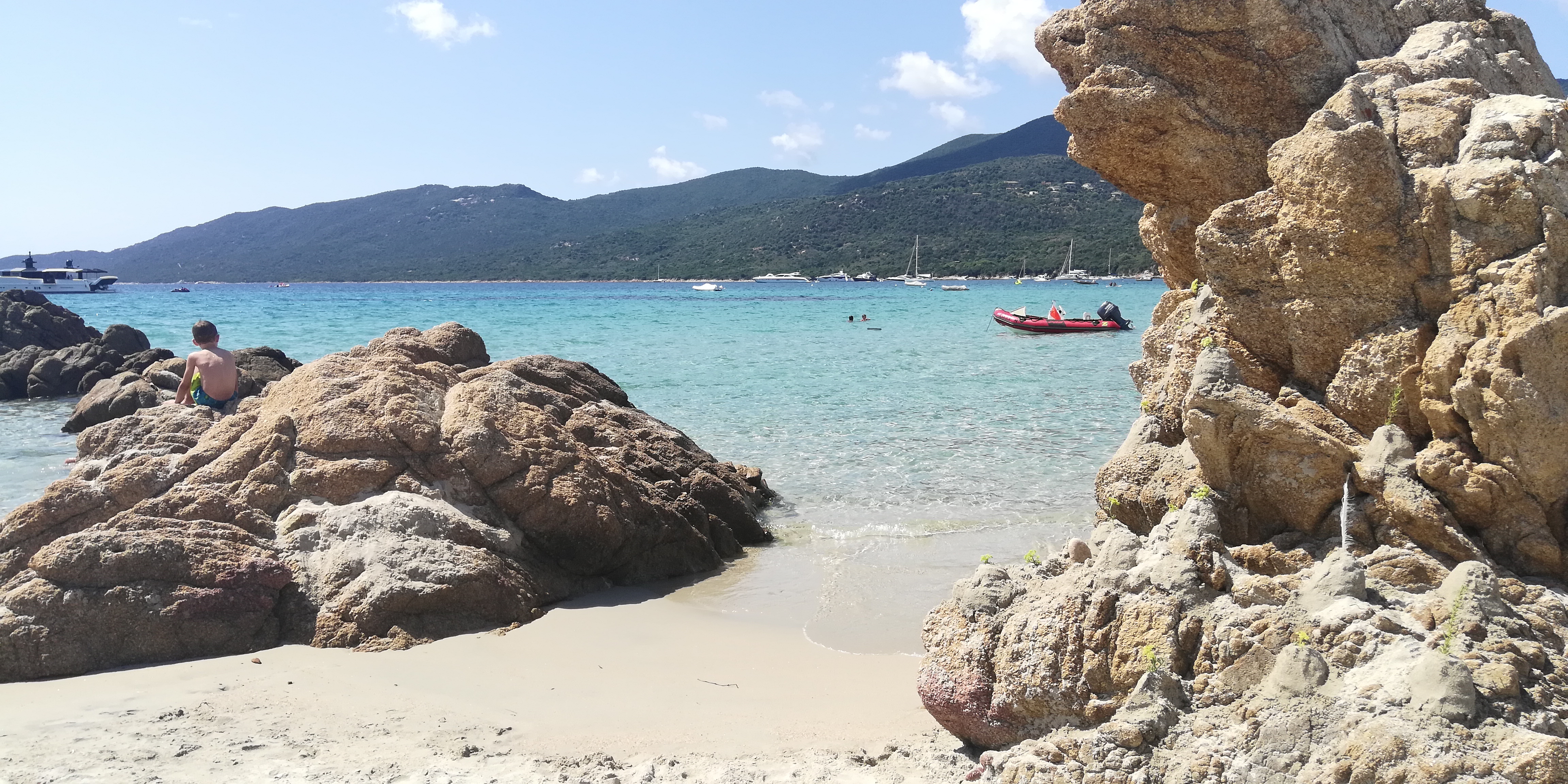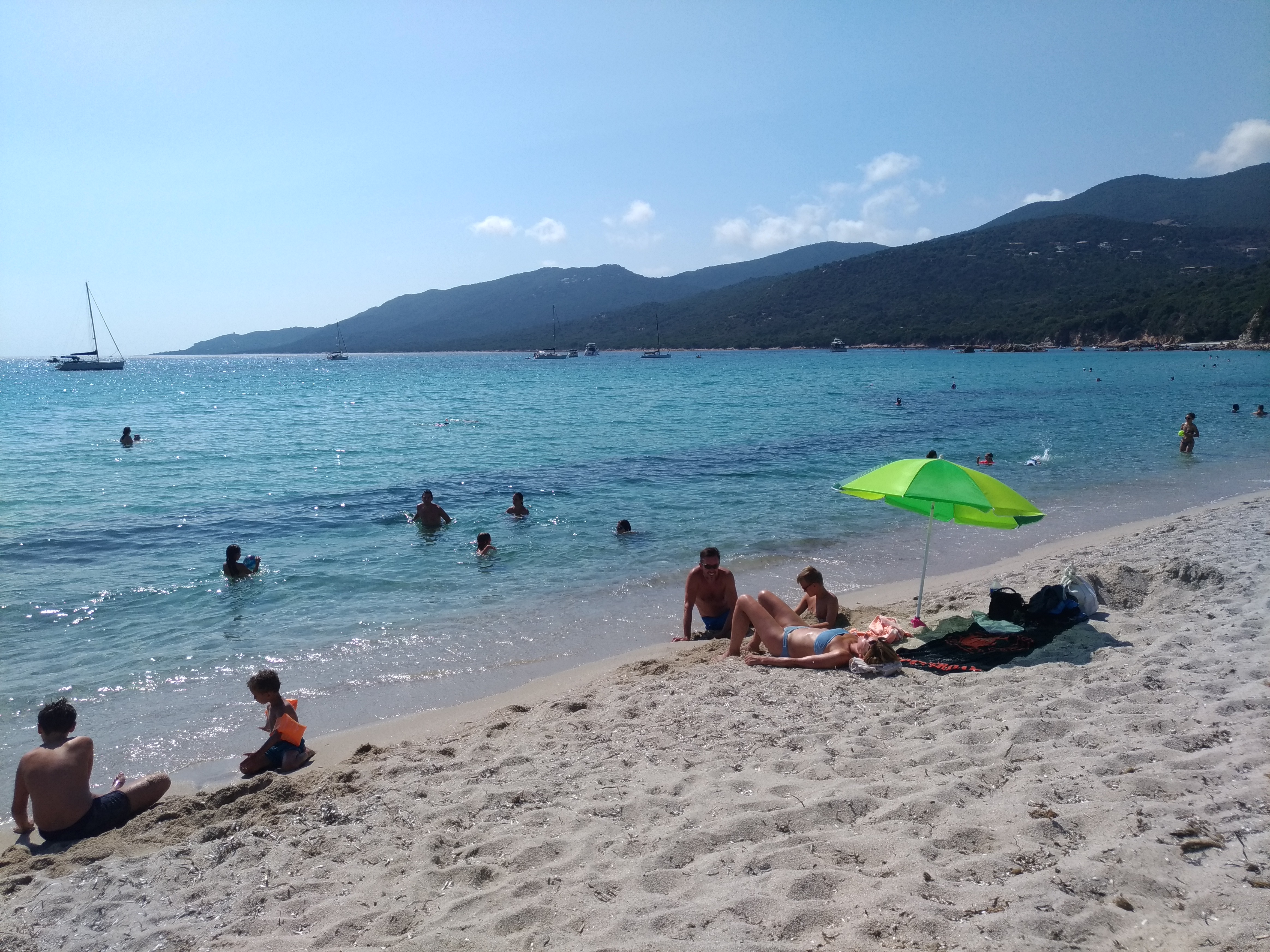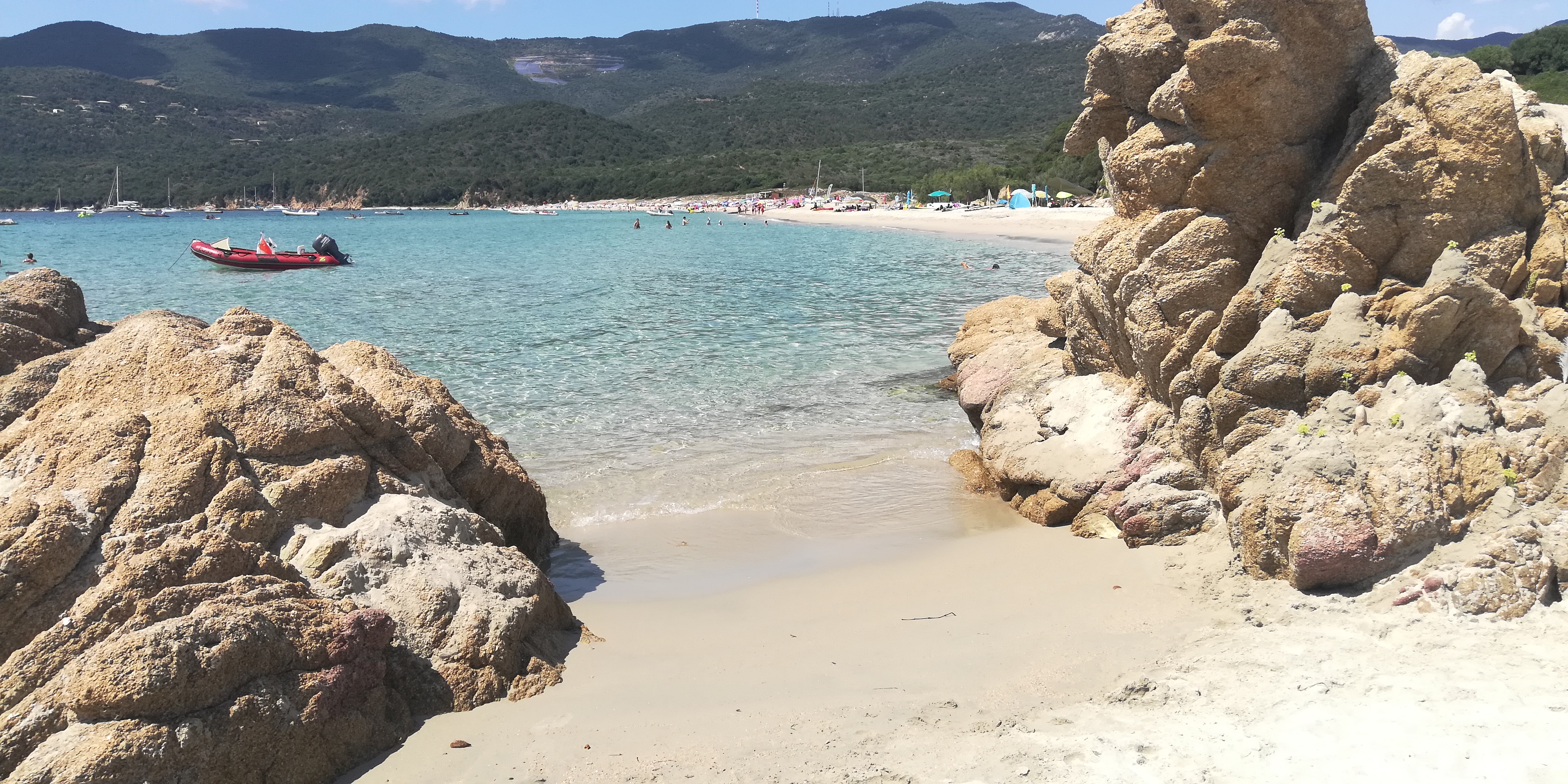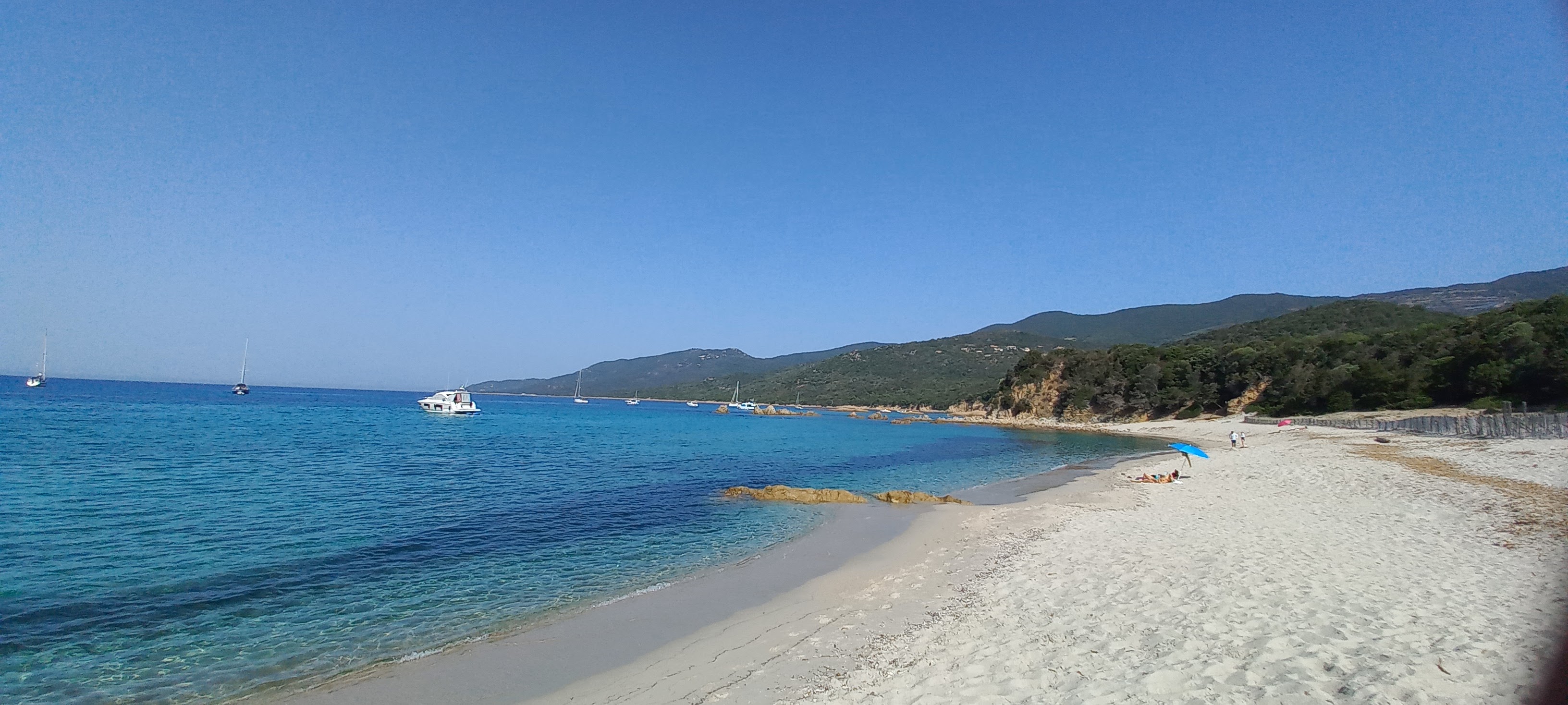 Une des plus chaude du Valinco , sable blanc, eau turquoise , du monde à cause du camping, accessible en bateau pas de bouées des 300 mètres