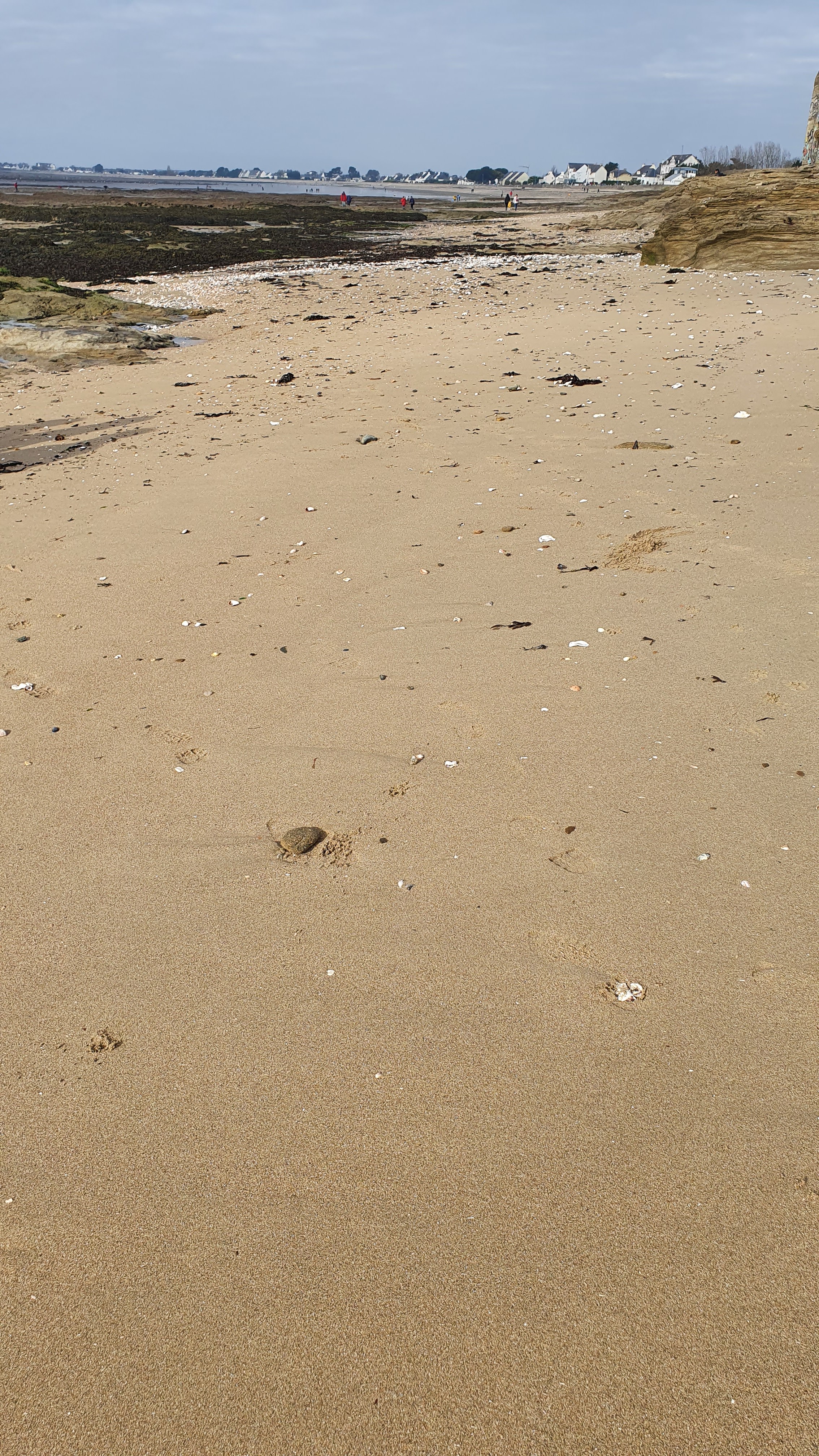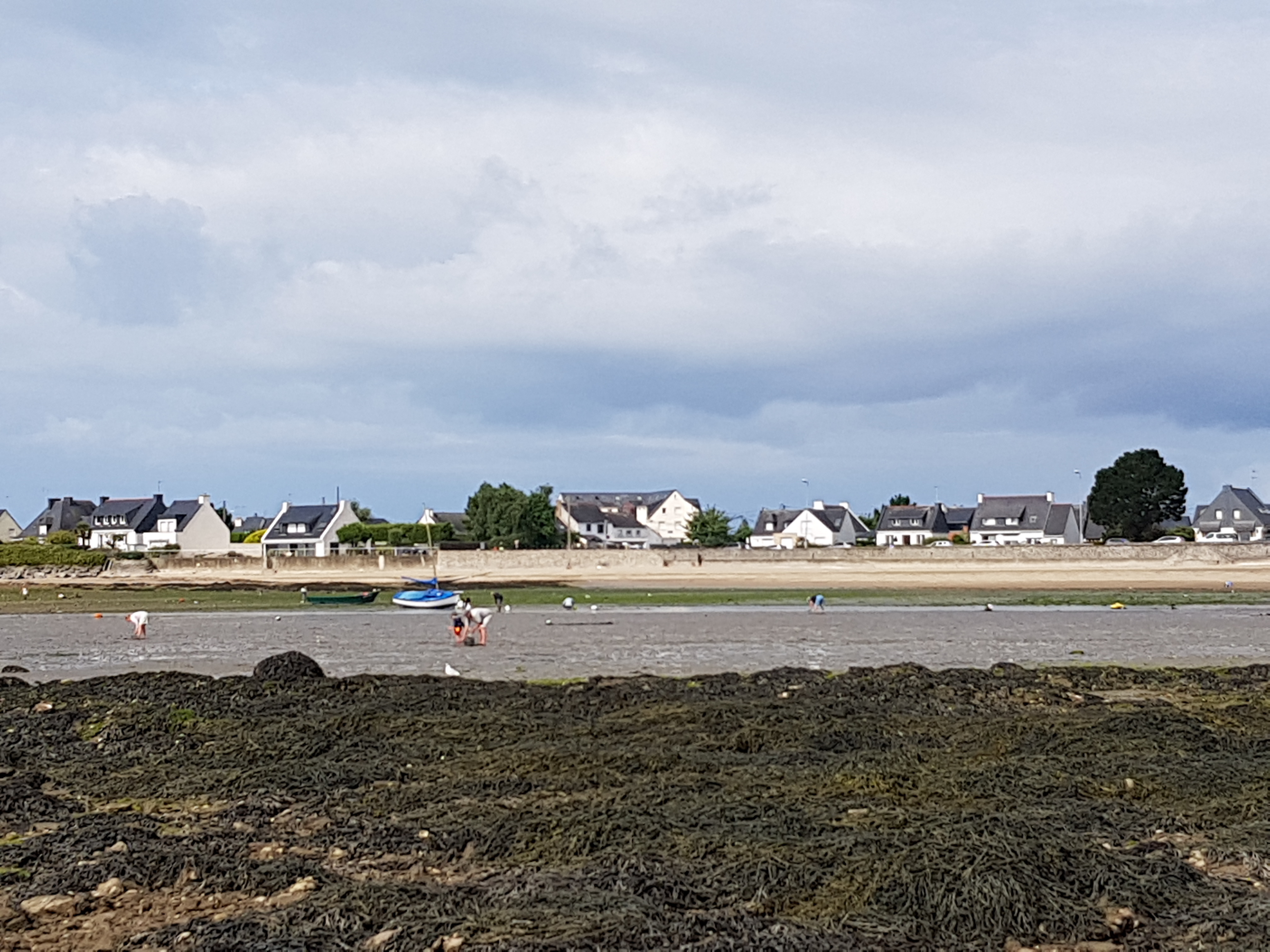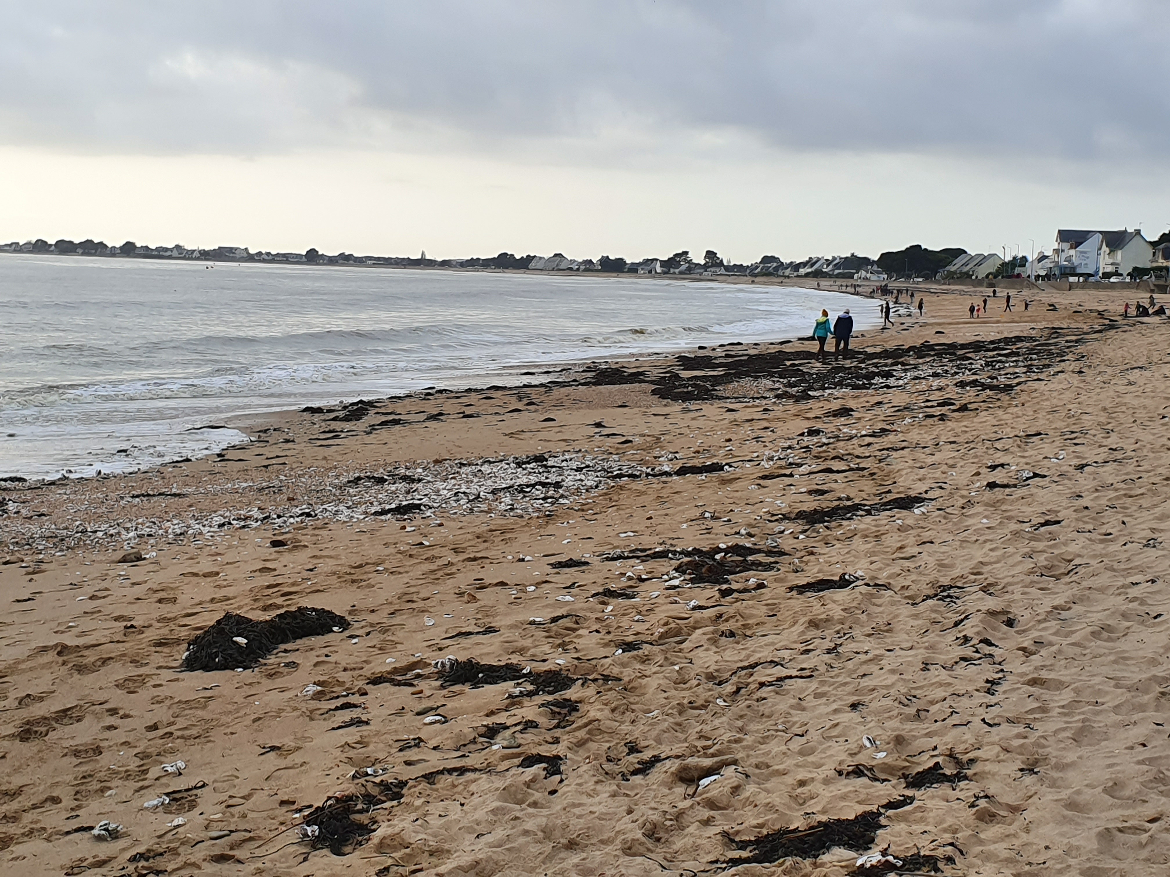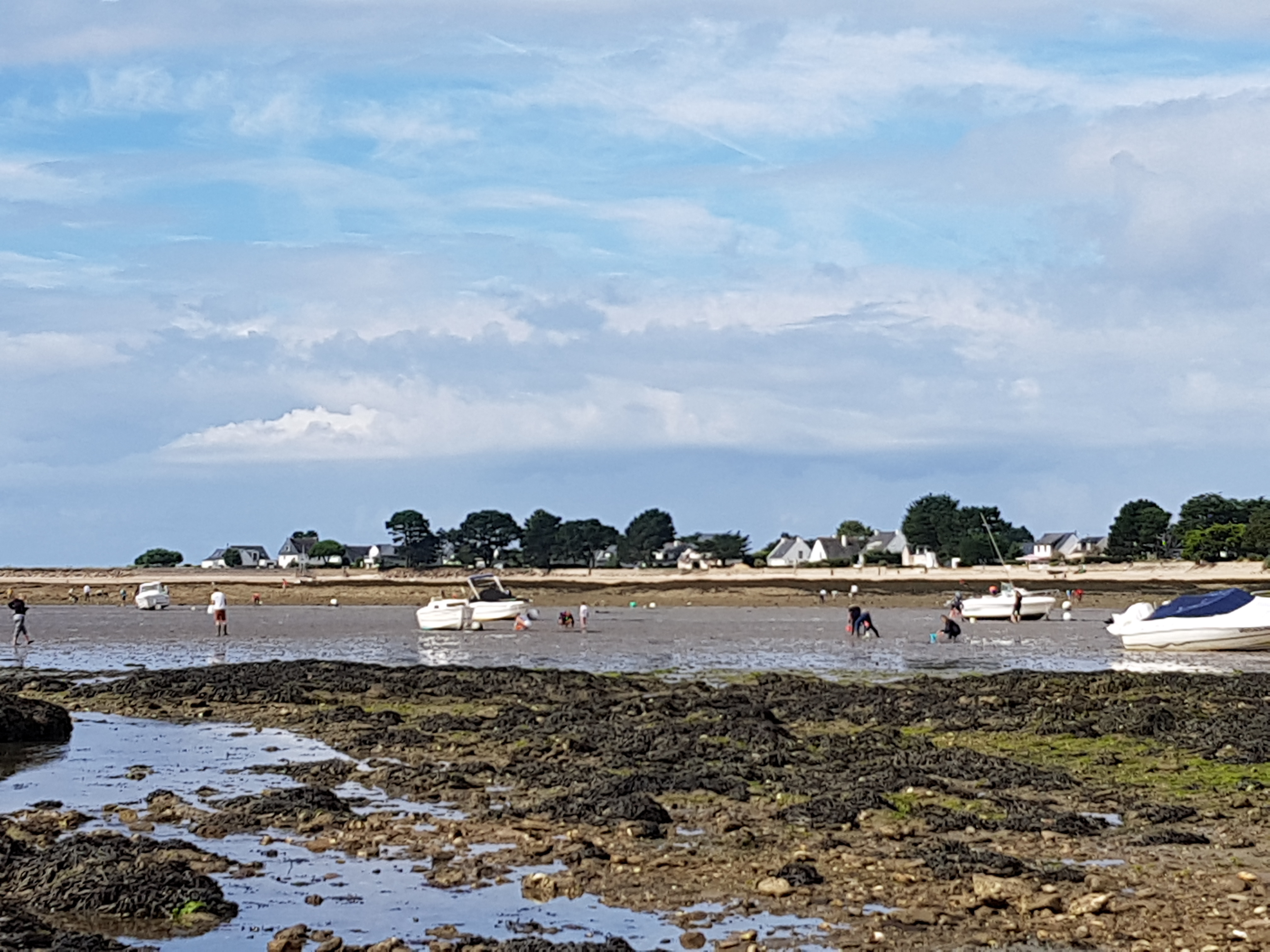 Grande plage, les gens peuvent être tranquilles au niveau distanciation sociale... activités multiples et surtout grabotagedans et sous les algues à la recherche hypothétique d'un repas-coquillage!