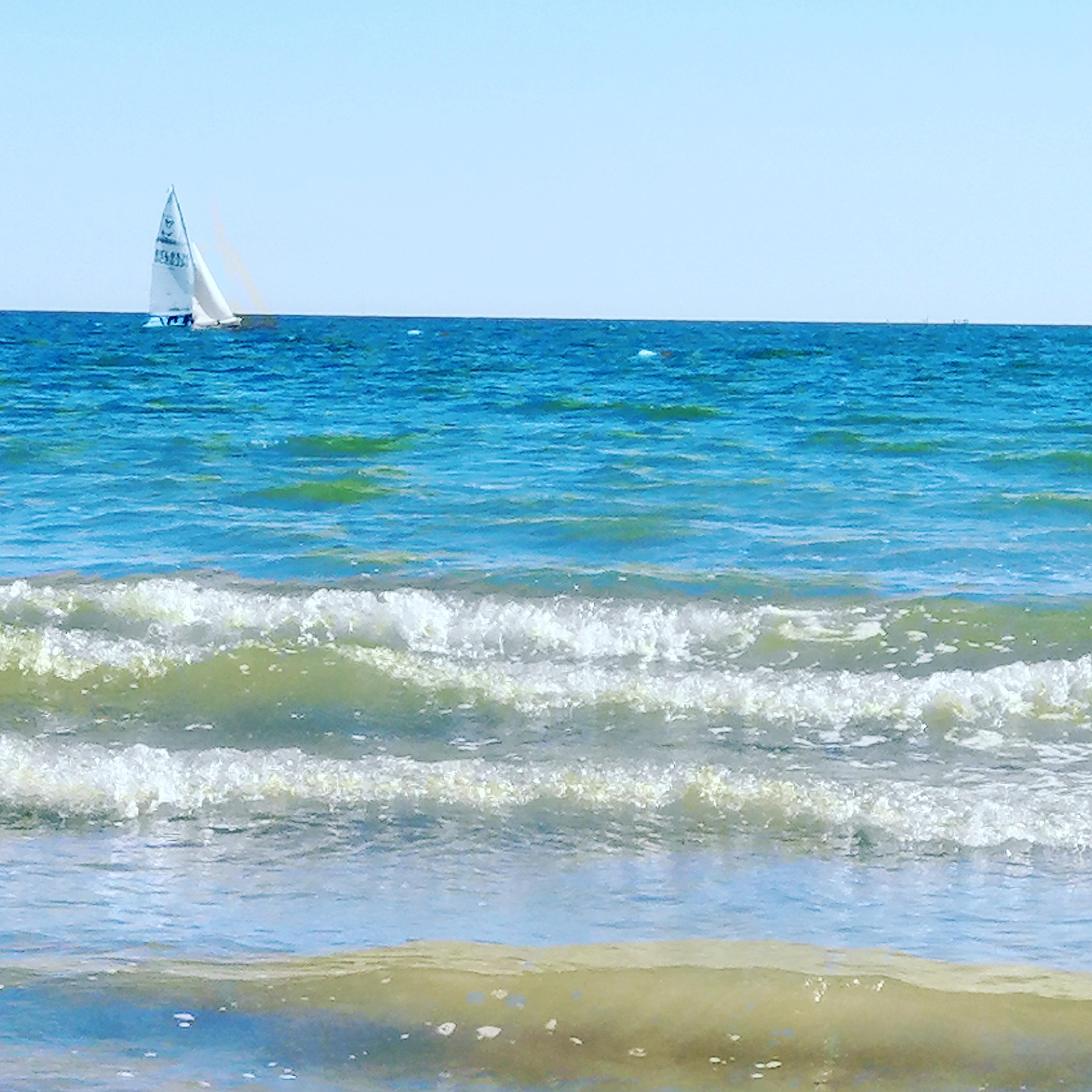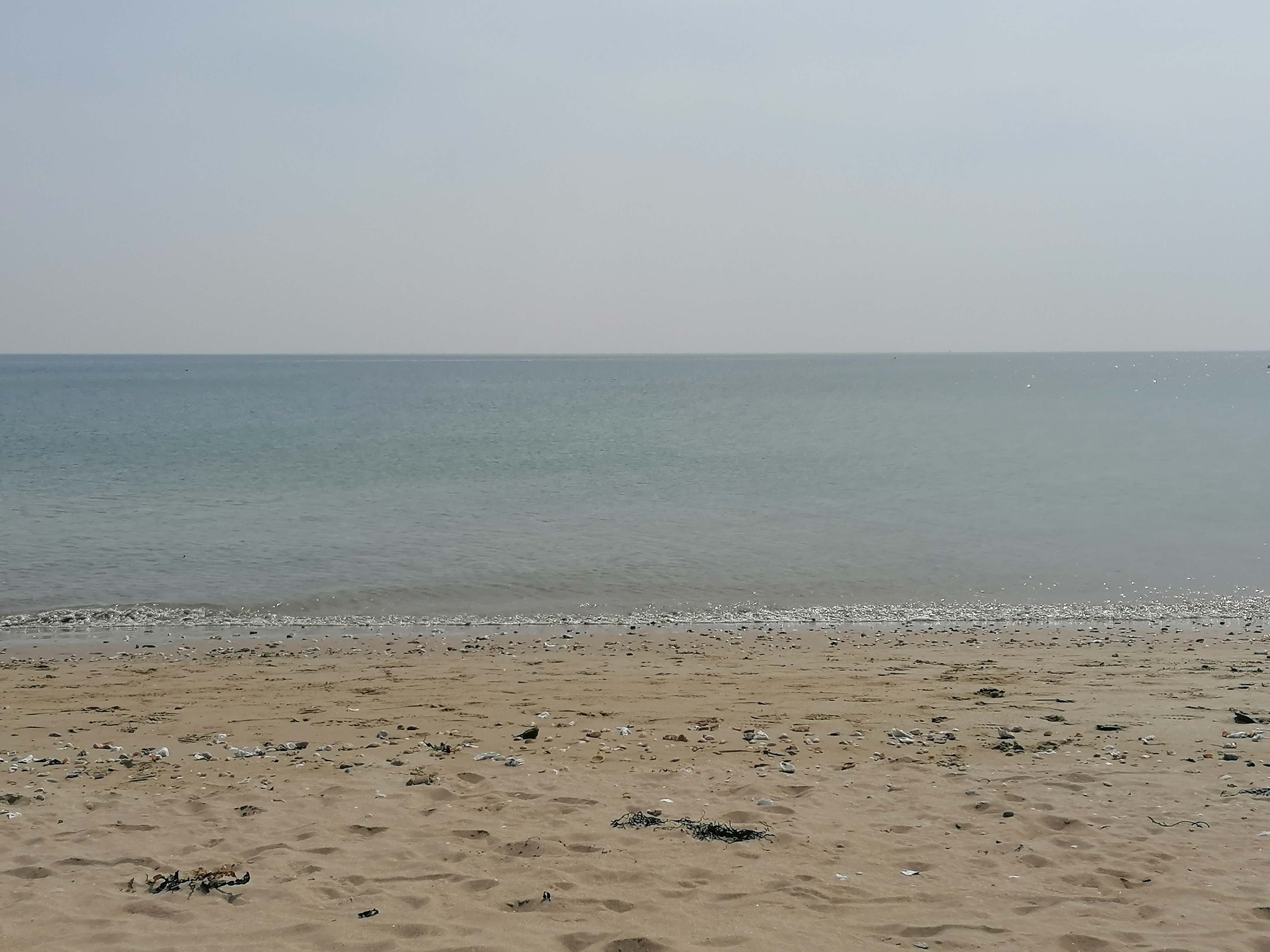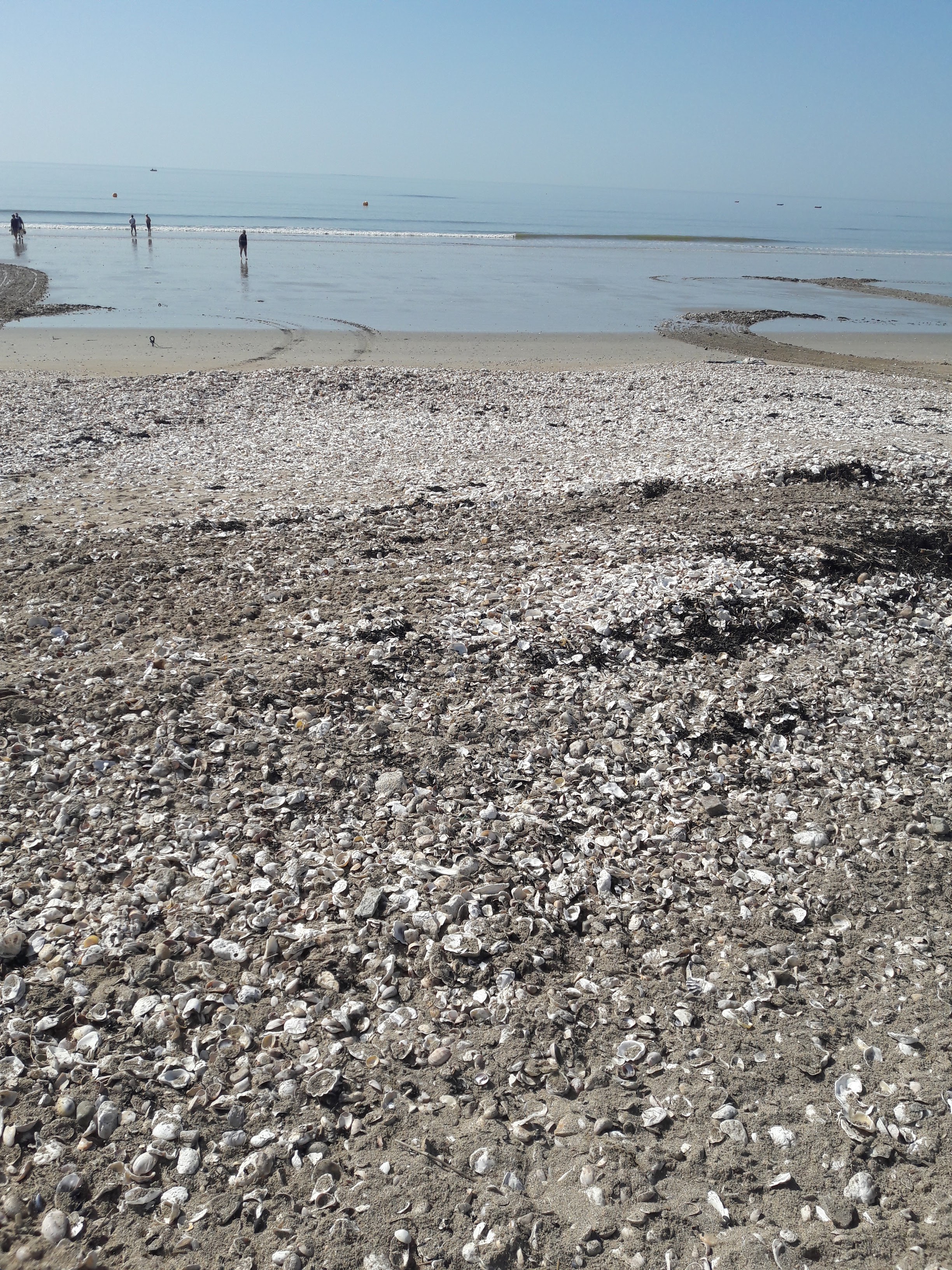 Très grande plage cailloux et coquillages au bord de l'eau la plage est faite de sable et de coquillages des vagues de 20 à 30 cm on peut se baigner