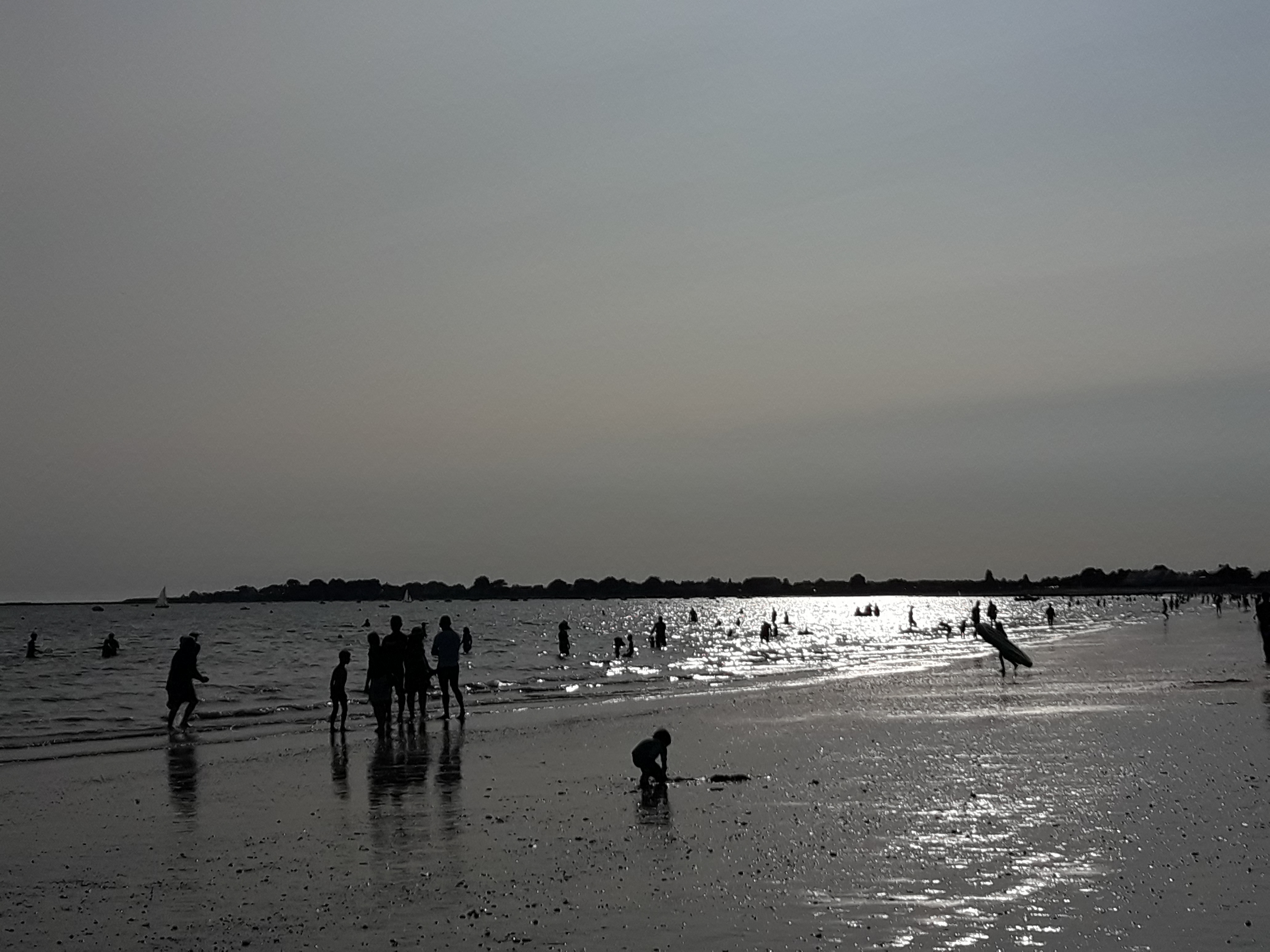 Bien cette plage. Du sable. Pente douce. Eau bonne à marée descendante. Y a même des rochers côté kervoyal. Par contre on voit pas le fond du tout..