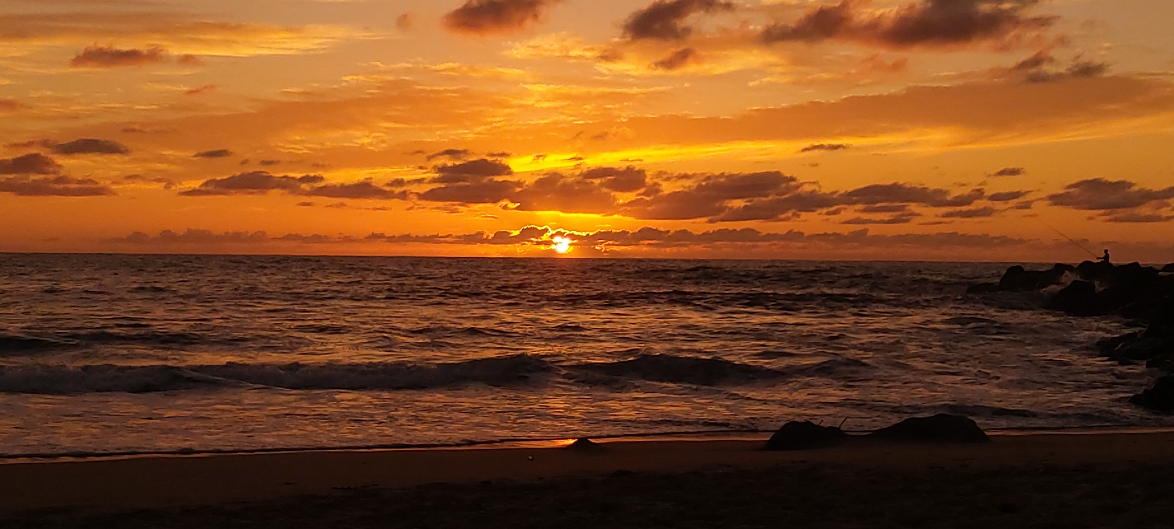 Grosses vagues, difficile de se baigner sereinement. Superbe couché de soleil avec en prime les dauphins !!