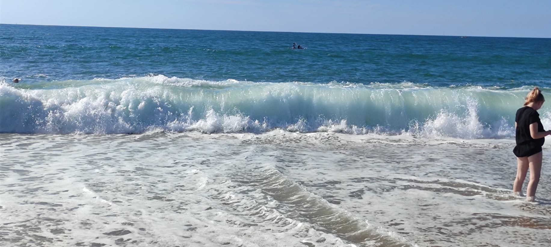 Plage très agréable petite vagues mais le souci c'est bcp trop de cailloux pour les pieds des enfants