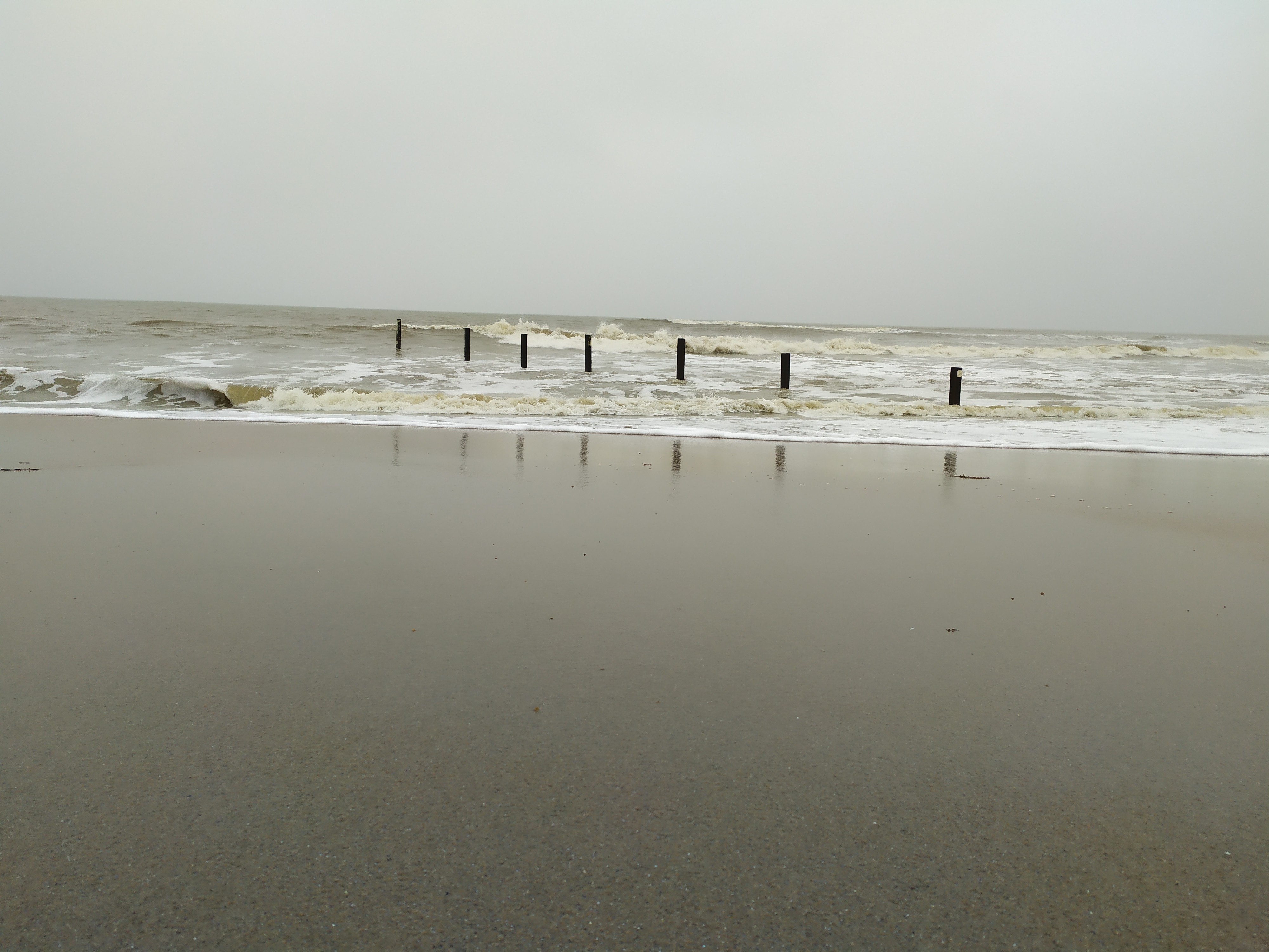 Plage familiale , surveillée , des poteaux pour s'amuser avec les belles vagues