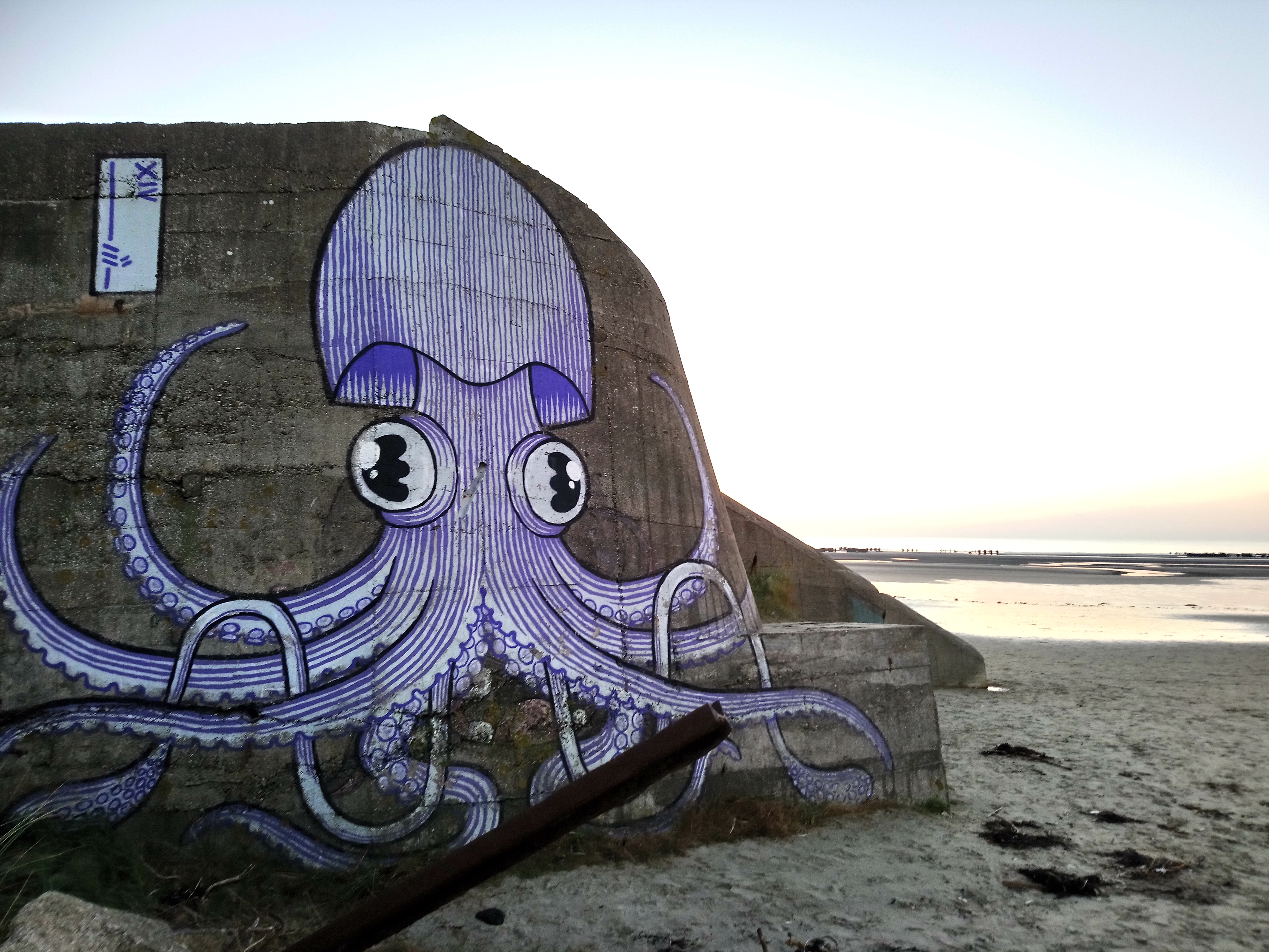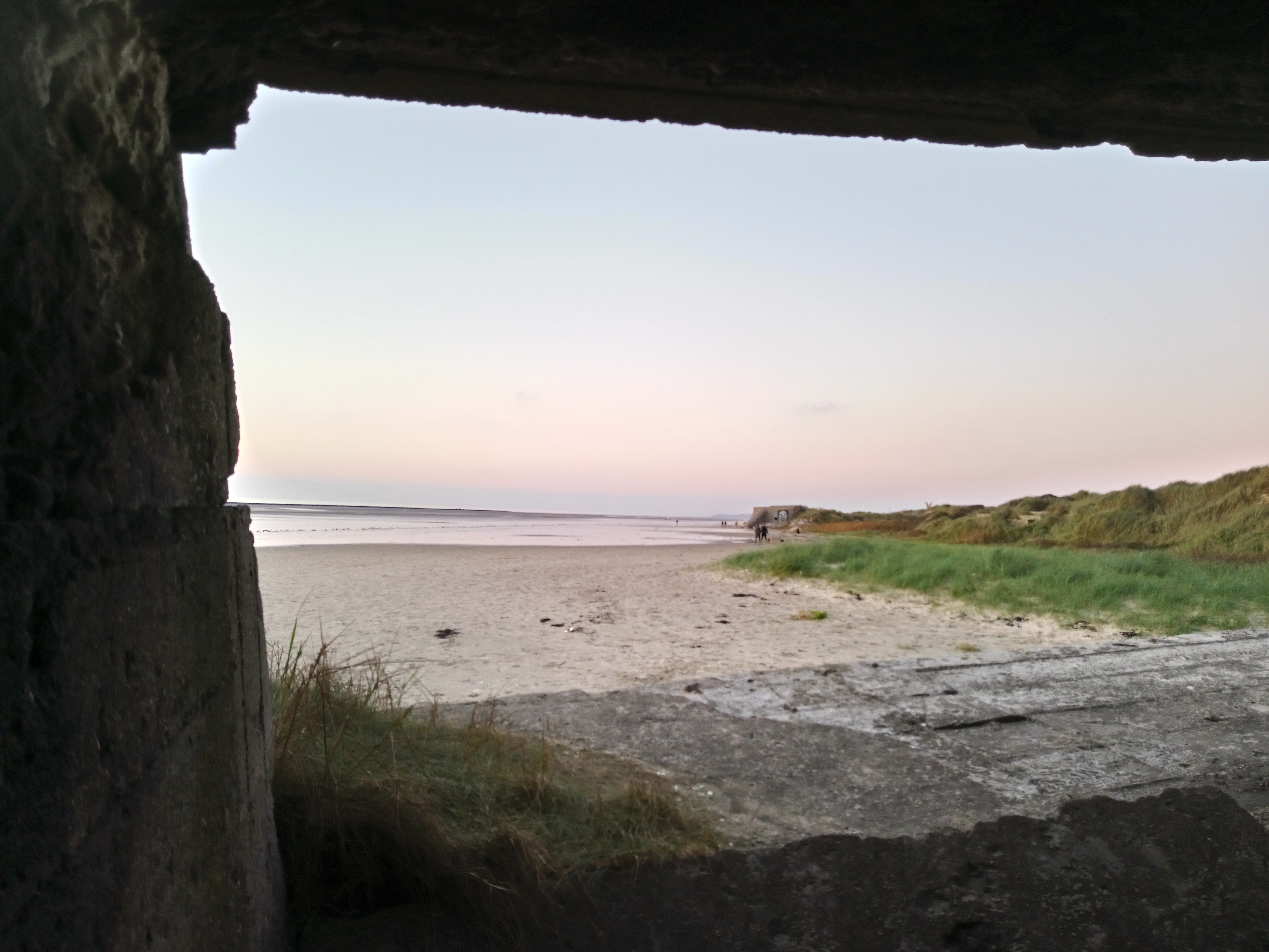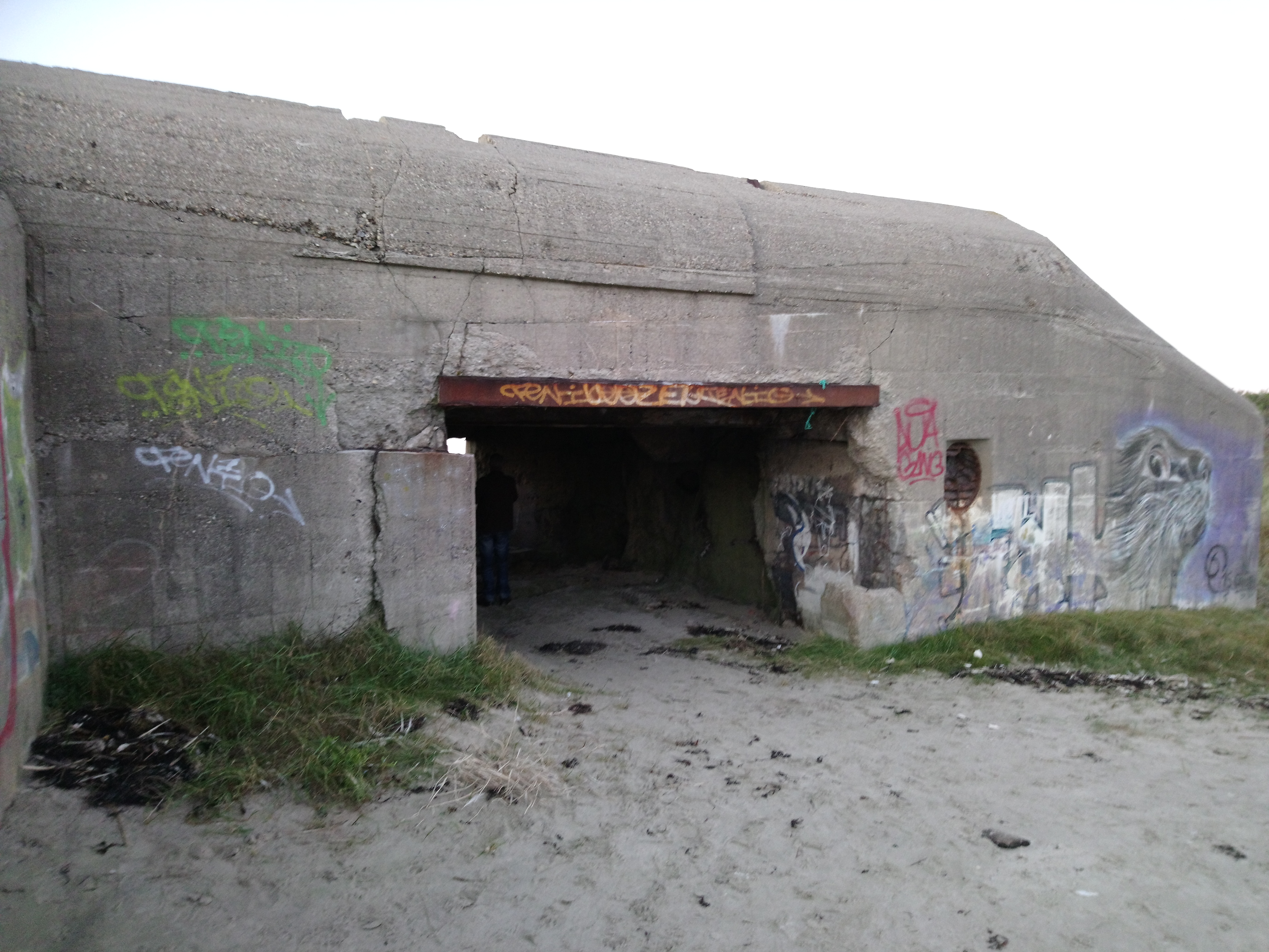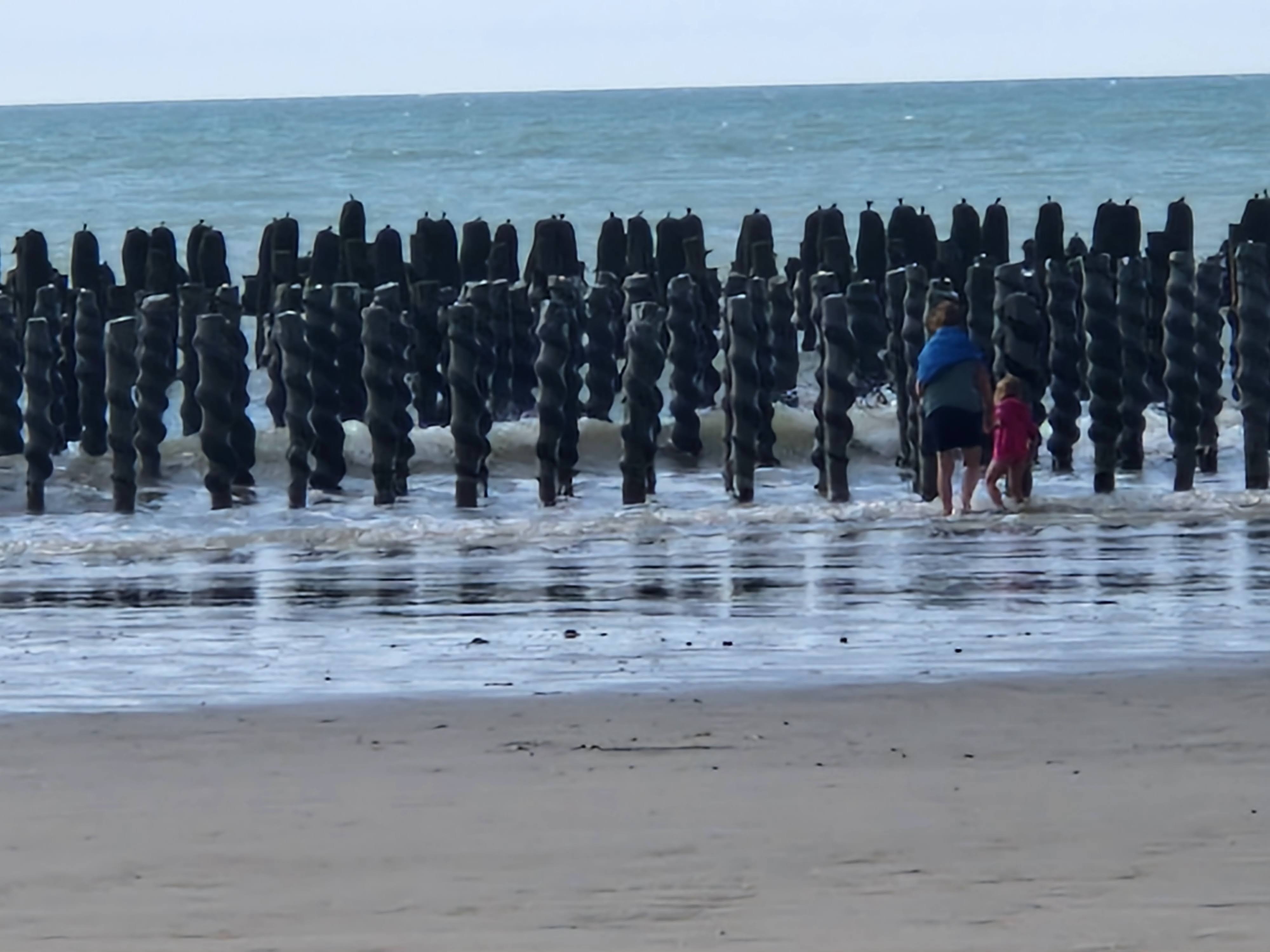 Belle et grande plage avec un vestige de la seconde guerre mondiale.....