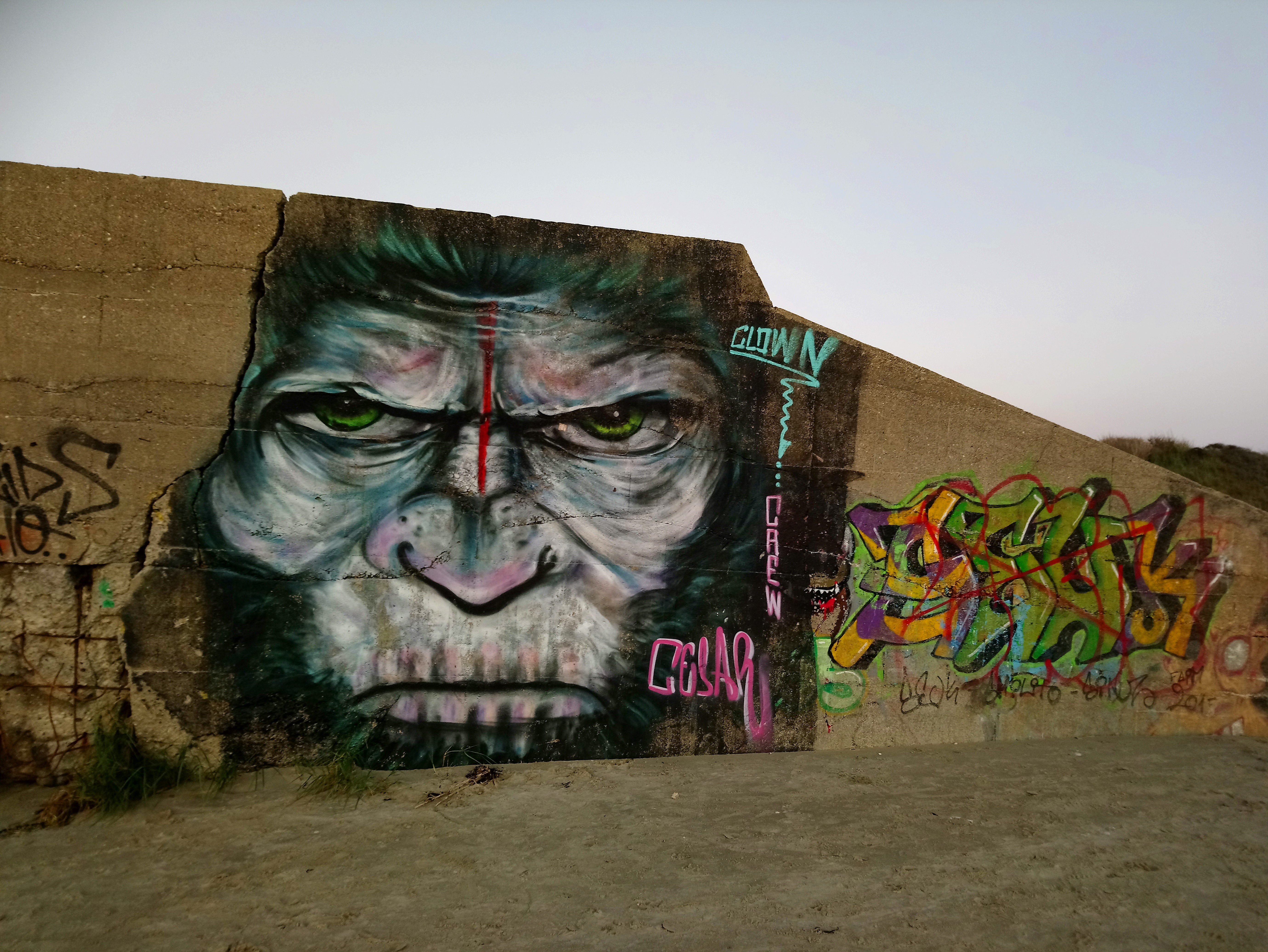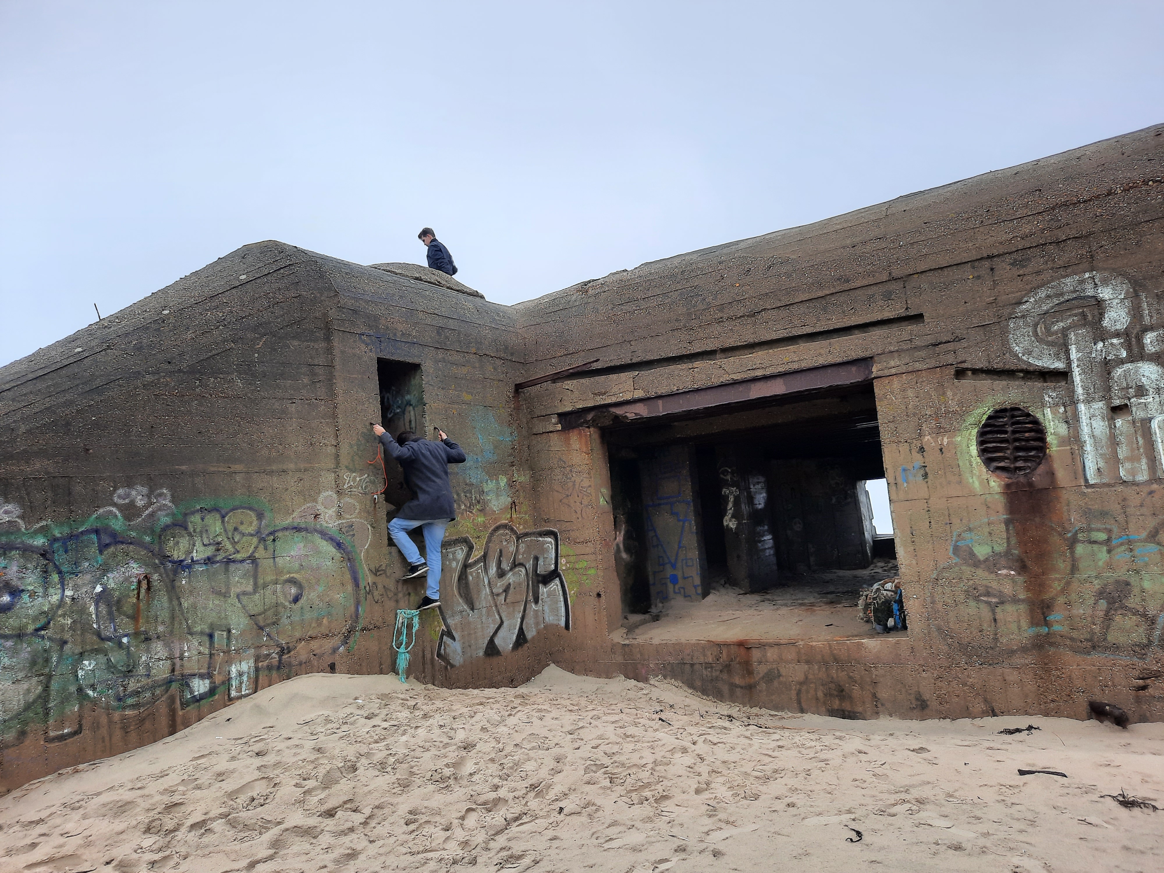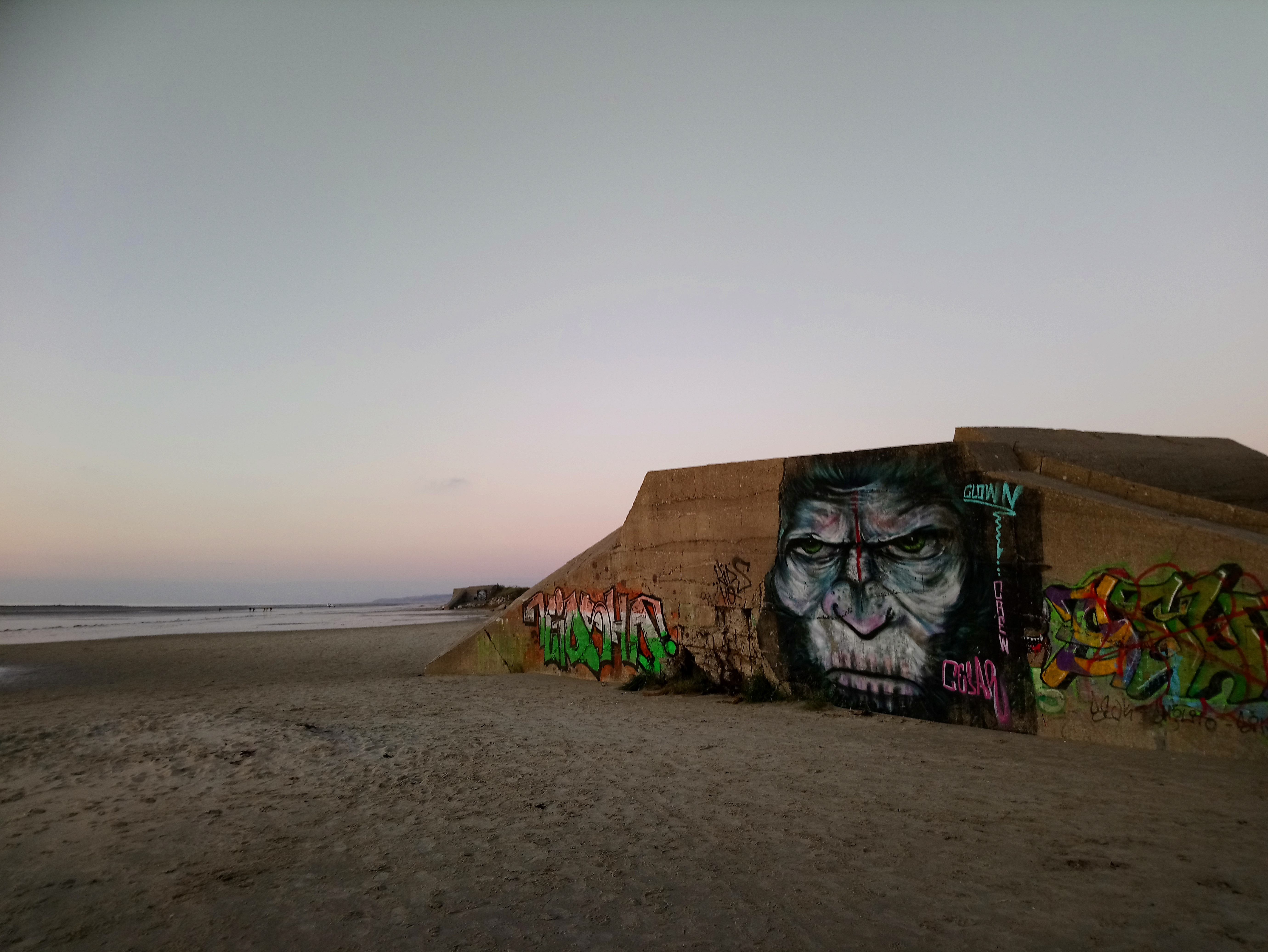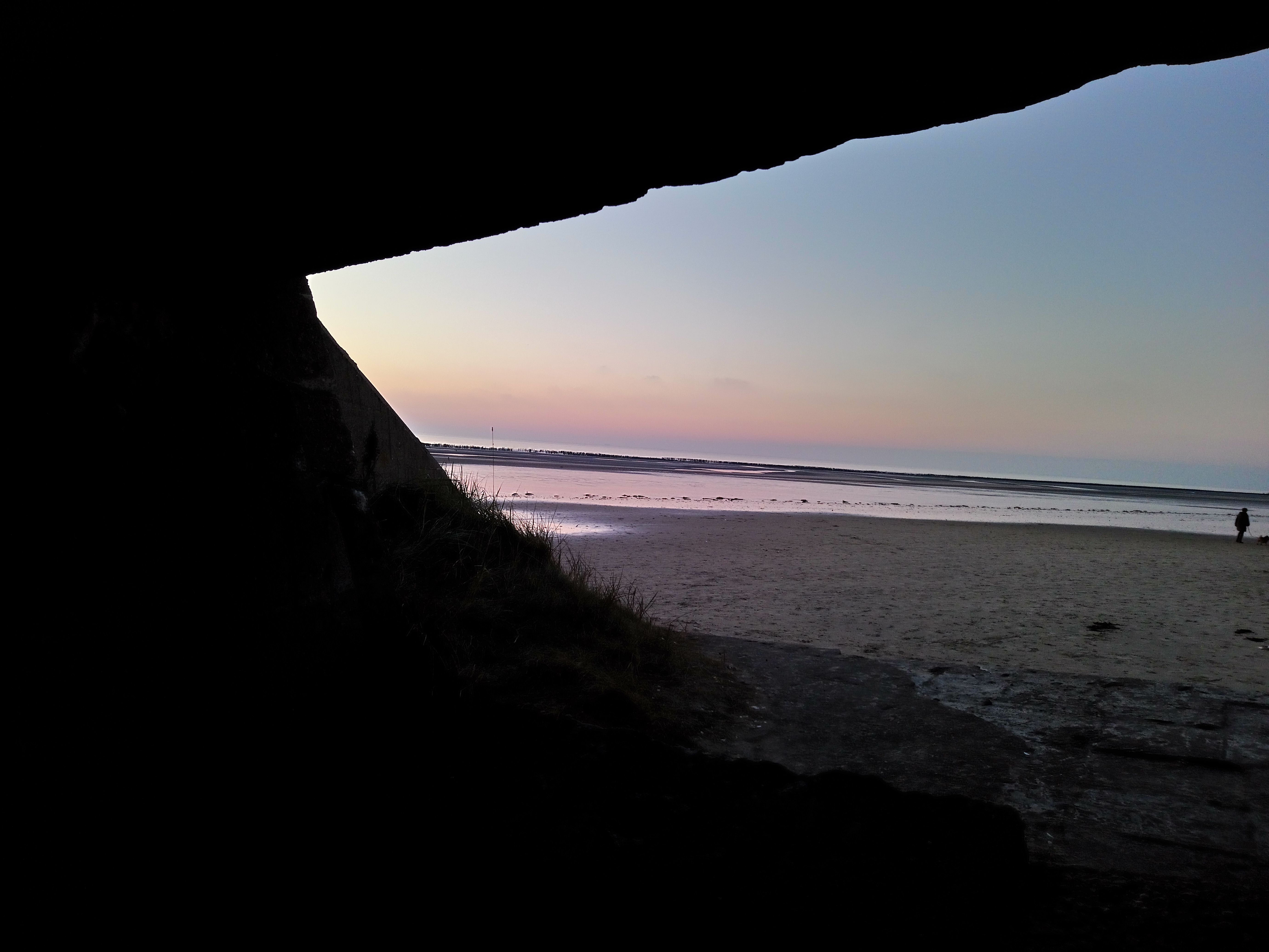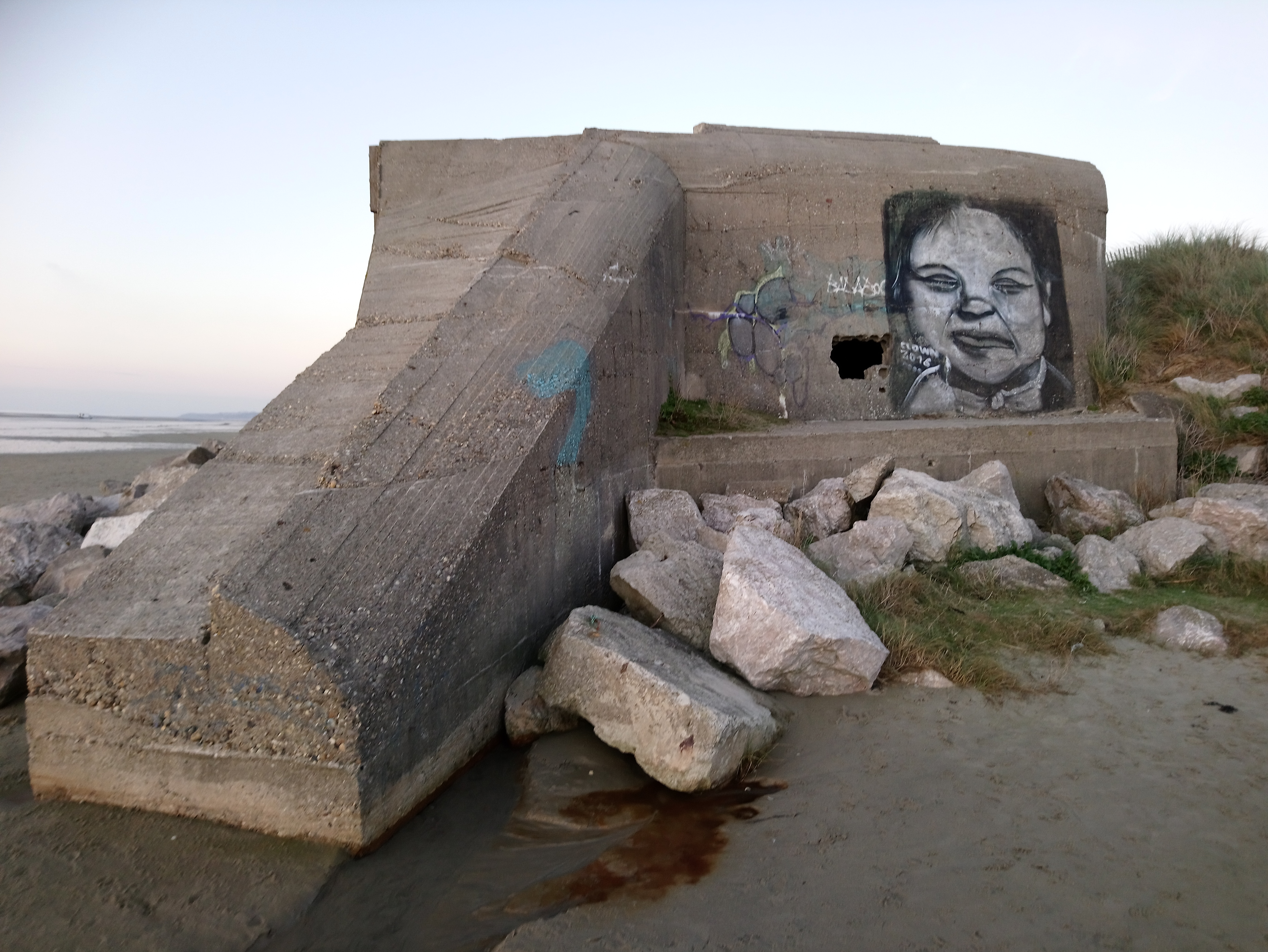 Belle et grande plage avec un vestige de la seconde guerre mondiale.....